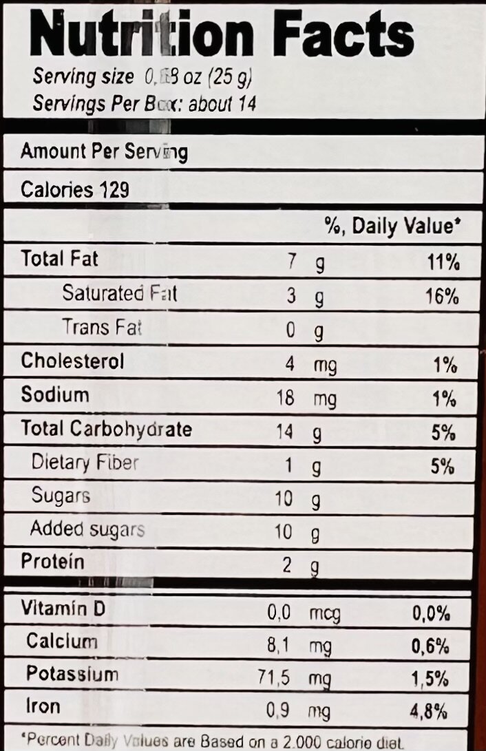 Chocolate icing (sugar, cocoa paste, cocoa butter, emulsifier – soya lecithin, flavor Vanillin»), chocolate to be formed (sugar, cocoa paste, cocoa butter, emulsifier-soya lecithin, flavor Vanillin), sugar, cocoa paste, cocoa butter, coconut oil, peanut, wafers.