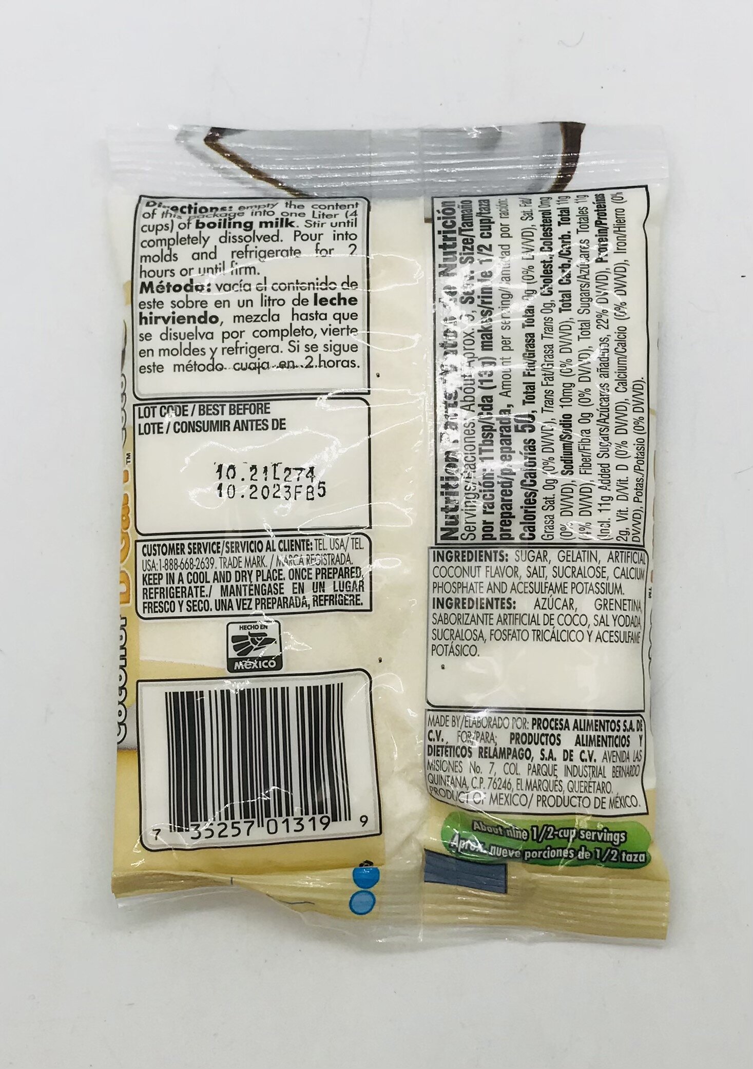 SUGAR, GELATIN, ARTIFICIAL COCONUT FLAVOR, SALT, SUCRALOSE, CALCIUM PHOSPHATE AND ACESULFAME POTASSIUM.