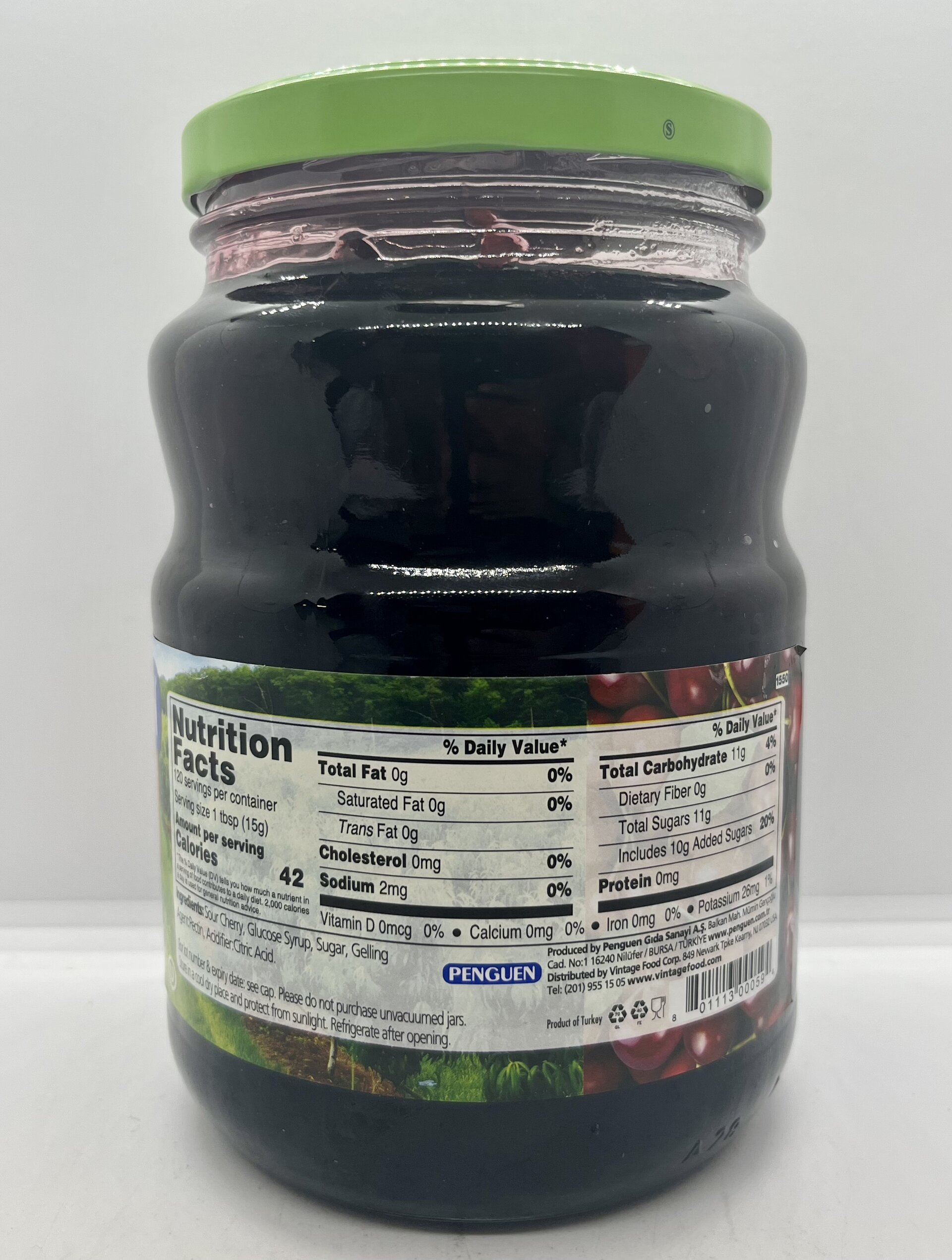 Sour cherry, glucose syrup, sugar, gelling agent pectin, acidifier: citric acid.