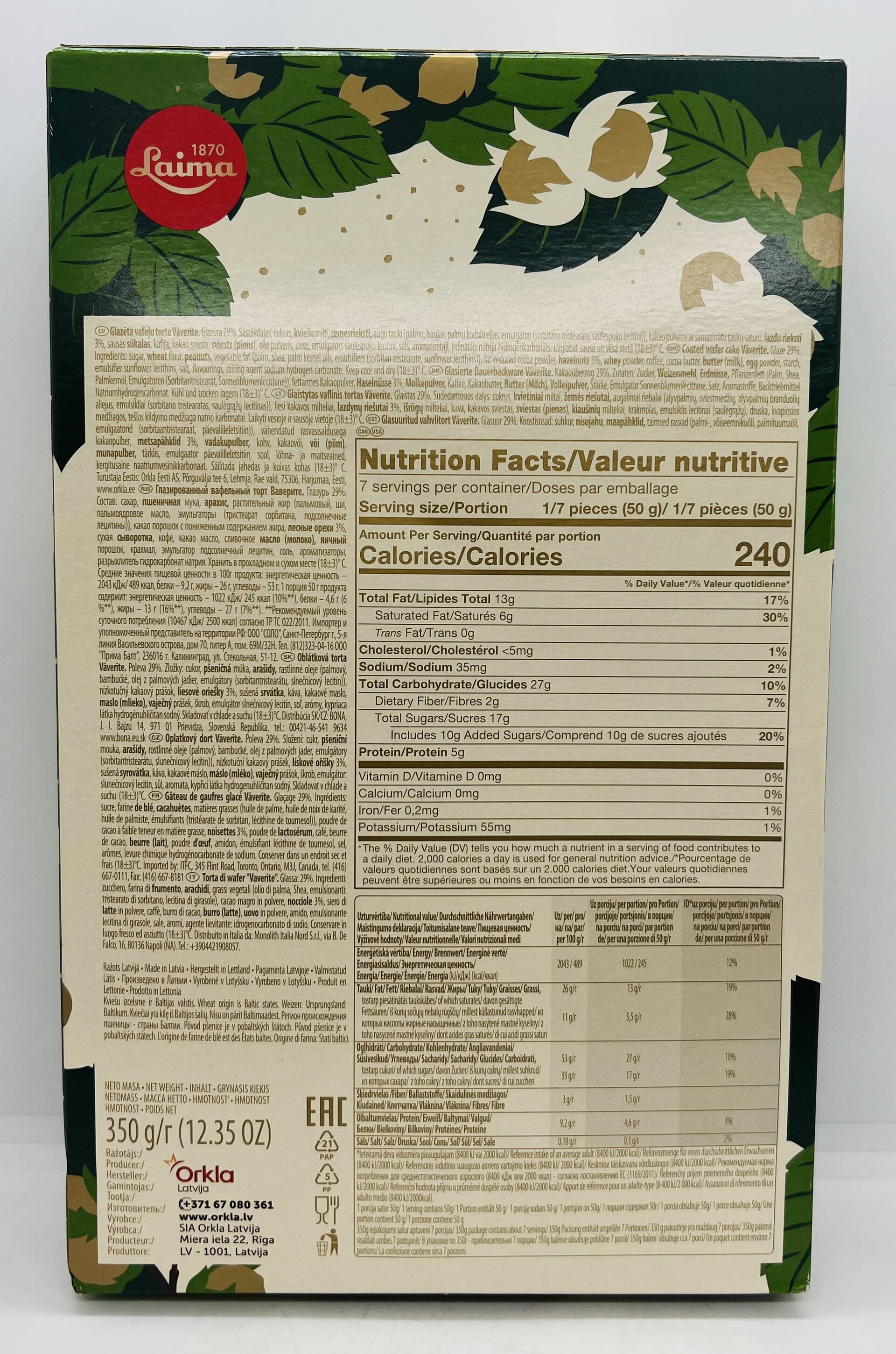 Sugar, wheat flour, peanuts, vegetable fat, fat-reduced cocoa powder, hazelnuts 3%, whey powder, coffee, cocoa butter, butter (milk), egg powder, starch emulsifier sunflower lecithin, salt, flavorings, raising agent sodium hydrogen carbonate.