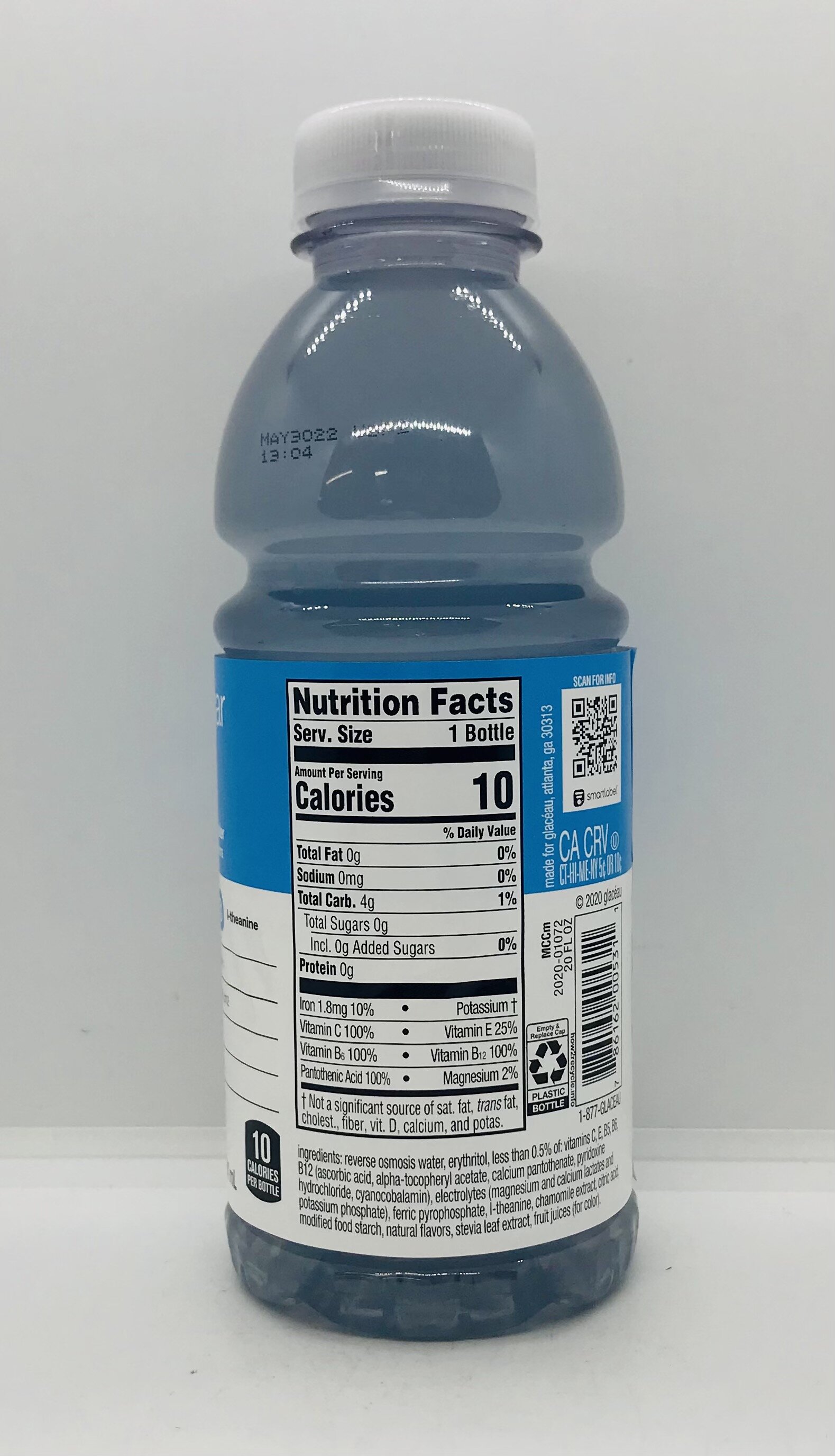 Reverse osmosis water, erythritol, less than 0.5% of: natural flavors, modified food starch, citric acid, vitamins C, E, B5, B6, B12 (ascorbic acid, alpha-tocopherol acetate, calcium pantothenate, pyridoxine hydrochloride, cyanocobalamin), electrolytes (magnesium and calcium lactates and potassium phosphate), stevia leaf extract, fruit juices (for color).
