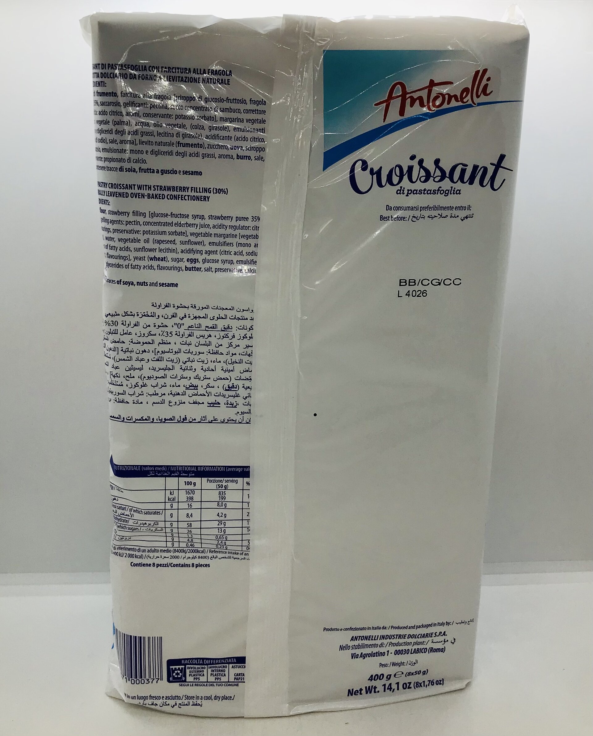 Wheat flour, strawberry filling [glucose-fructose syrup, strawberry puree 35%, sucrose, gelling agents: pectin, concentrated elderberry juice, acidity regulator: citric acid, flavourings, preservative: potassium sorbate], vegetable margarine [vegetable fat (palm), water, vegetable oil (rapeseed, sunflower), emulsifiers (mono and diglycerides of fatty acids, sunflower lecithin), acidifying agent (citric acid, sodium citrate), salt, flavourings], yeast (wheat), sugar, eggs, glucose syrup, emulsifiers: mono and diglycerides of fatty acids, flavourings, butter, salt, preservative: calcium propionate.