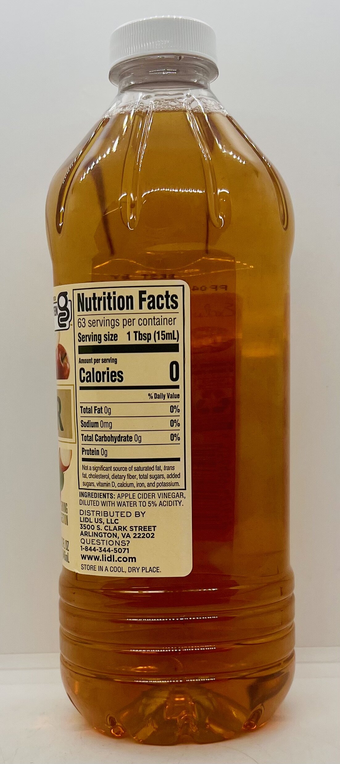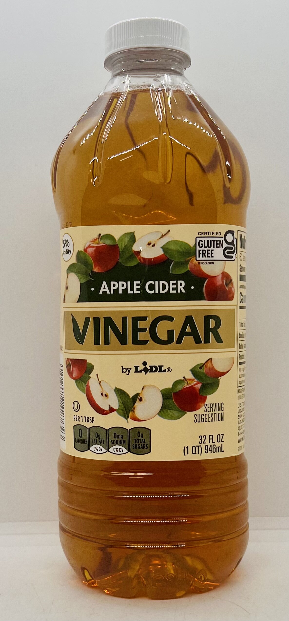 Apple cider vinegar, diluted w. water to 5% acidity.