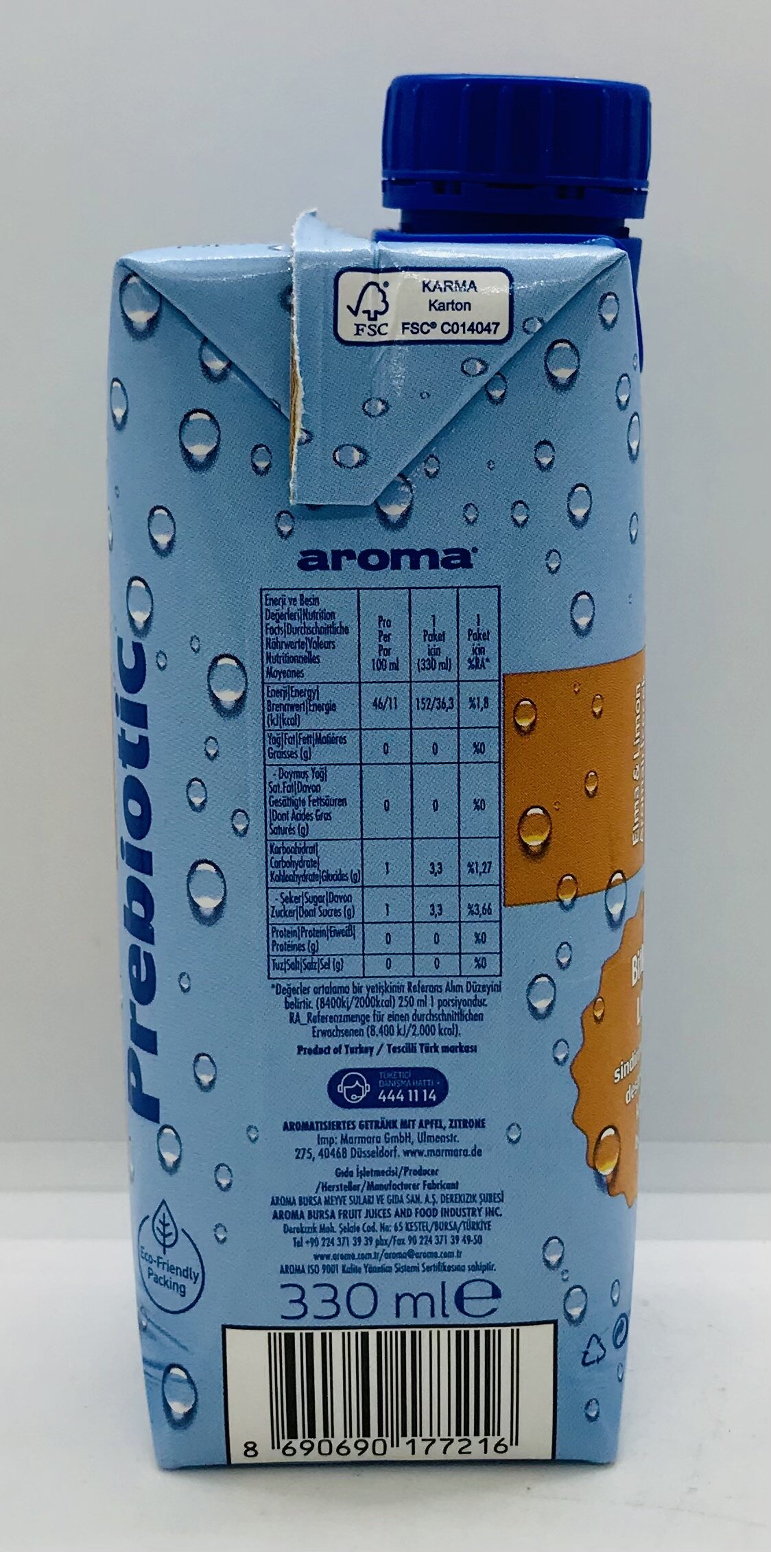 Water, inulin, apple juice concentrate, natural aroma, natural citrus aroma, natural tea aroma, acidity regulator, tea extract, antioxidant.