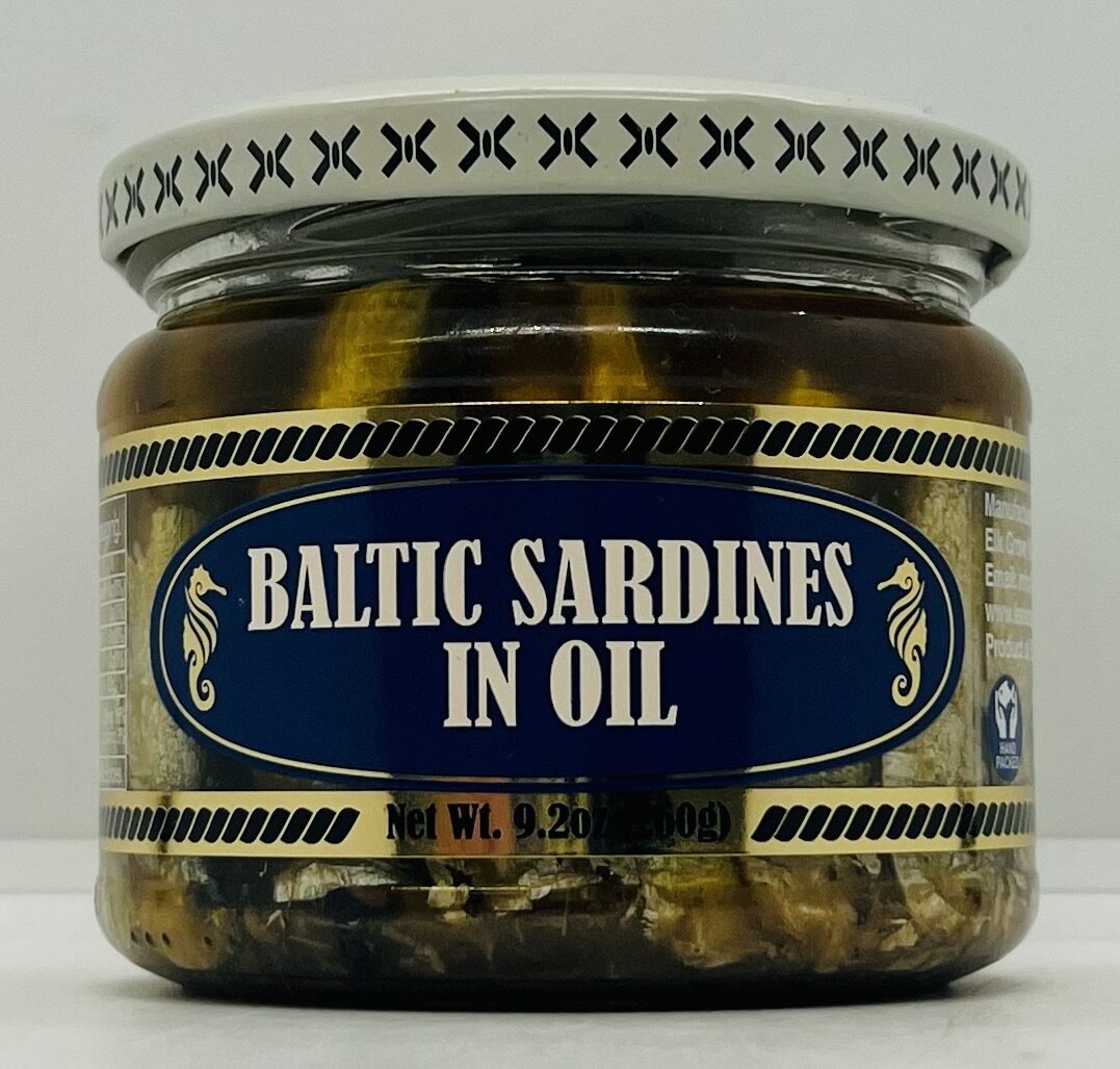 Smoked Baltic sardines, sunflower oil, salt, spices.