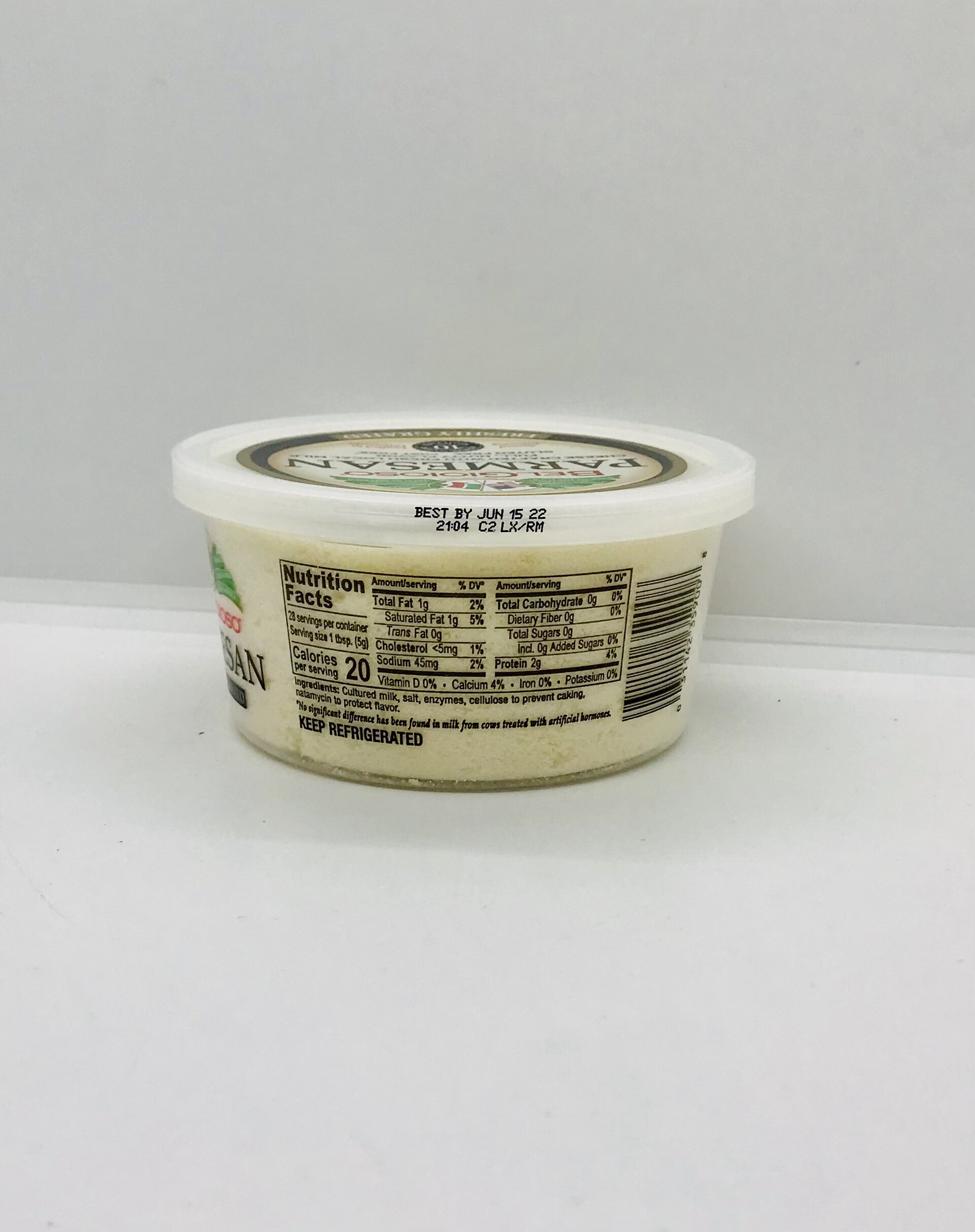 Cultures milk, salt, enzymes cellulose to prevent. caking natamycin to protect flavor.
