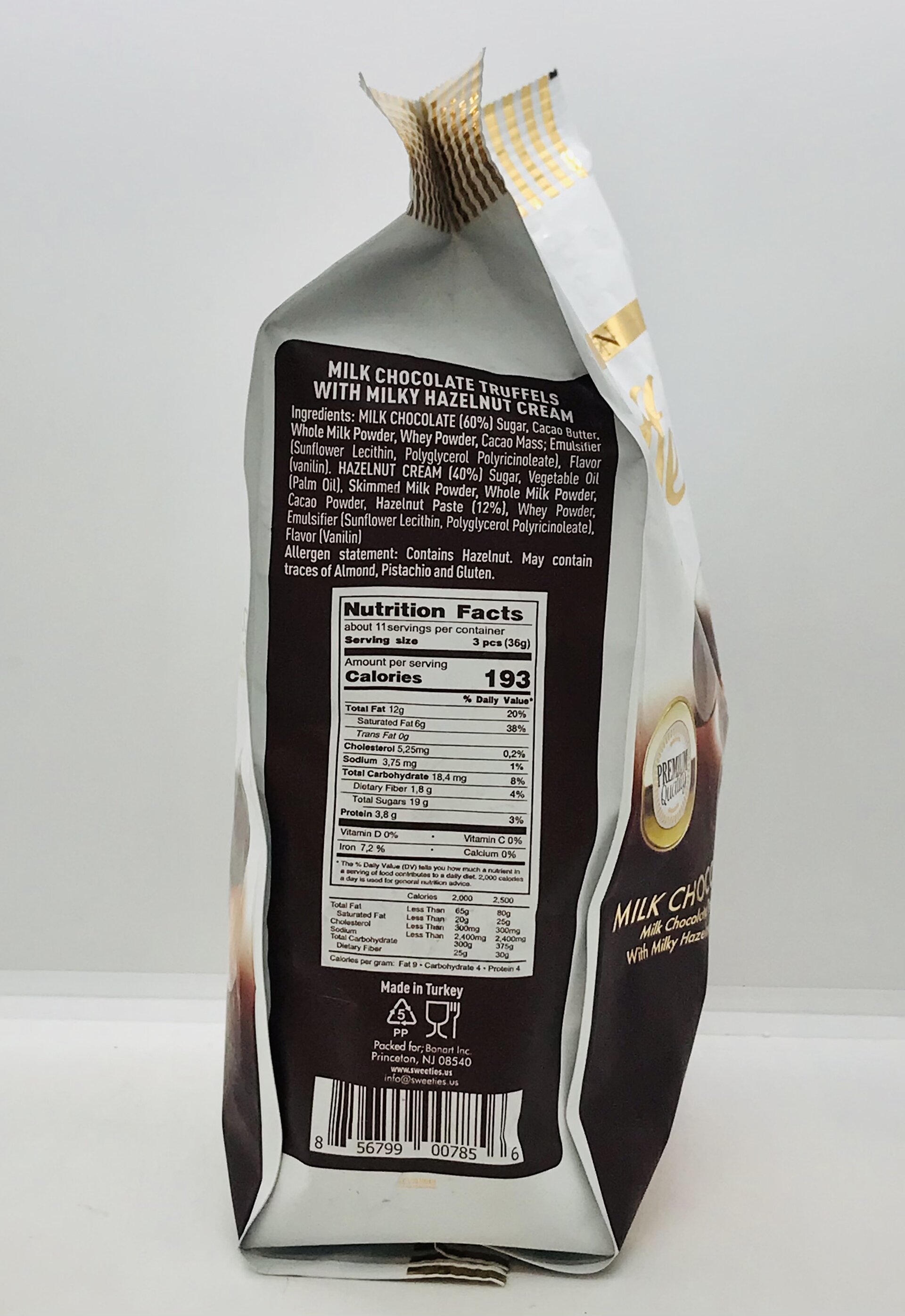 MILK CHOCOLATE (60%) Sugar, Cacao Butter, Whole Milk Powder, Whey Powder, Cacao Mass; Emulsifier (Sunflower Lecithin, Polyglycerol Polyricinoleate), Flavor (vanilin). HAZELNUT CREAM (40%) Sugar, Vegetable Oil (Palm Oil), Skimmed Milk Powder, Whole Milk Powder, Cacao Powder, Hazelnut Paste (12%), Whey Powder, Emulsifier (Sunflower Lecithin, Polyglycerol Polyricinoleate). Flavor (Vanilin) Allergen statement: Contains Hazelnut.