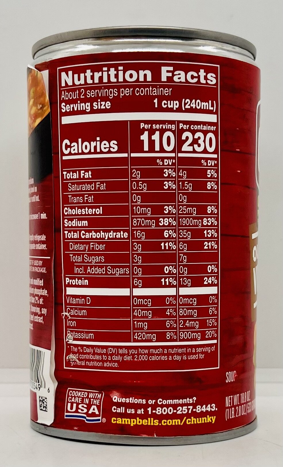 Water, carrots, potatoes, seasoned beef- beef broth and modified cornstarch product (beef, beef broth, salt, modified cornstarch, sodium phosphate, spice), celery, diced tomatoes in tomato juice, corn.