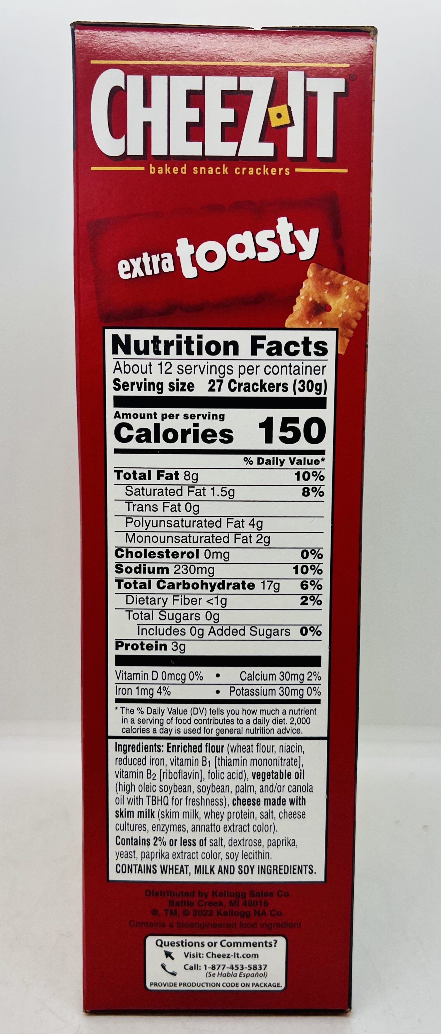 Enriched flour (wheat flour, niacin, reduced iron, vitamin B1 [thiamin mononitrate], vitamin B2 (riboflavin], folic acid), vegetable oil (high oleic soybean, soybean, palm, and/or canola oil with TBHQ for freshness), cheese made with skim milk (skim milk, whey protein, salt, cheese cultures, enzymes, annatto extract color).