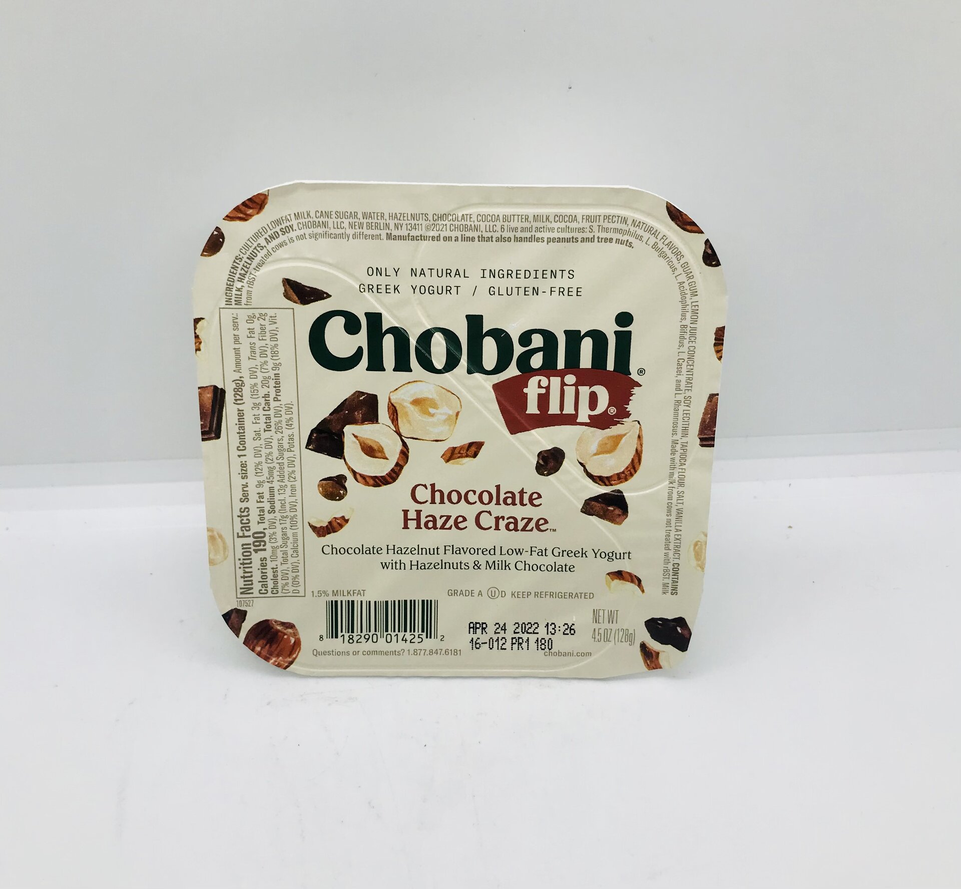 Cultures lowfat milk, cane sugar, water, hazelnuts, chocolate, cocoa butter, milk, cocoa, soy lecithin, fruit pectin, natural flavors, tapioca flour, color, guar gum, salt, lemon juice concentrate, vanilla extract.