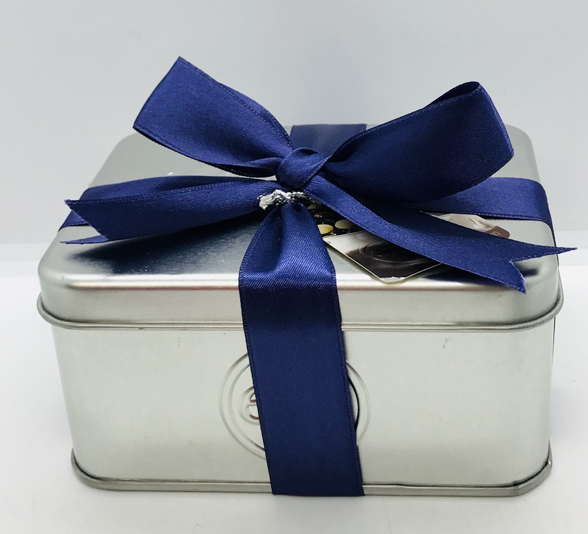 Dark Chocolate (60%) [Sugar, cocoa mass, cocoa butter, emulsifier (soya lecithin), flavouring (vanillin)], Milk Chocolate (26%) [Sugar, milk powder, cocoa butter, cocoa mass, emulsifier (soya lecithin), flavouring (vanillin)], White Chocolate (14 % ) [Sugar, milk powder, cocoa butter, emulsifier (soya lecithin), flavouring (vanillin), hazelnut (12%), orange peel (8%), almond (8%), sugar, glazing agent (shellac). Allergen Information: Contains Nuts, Milk and Soya.