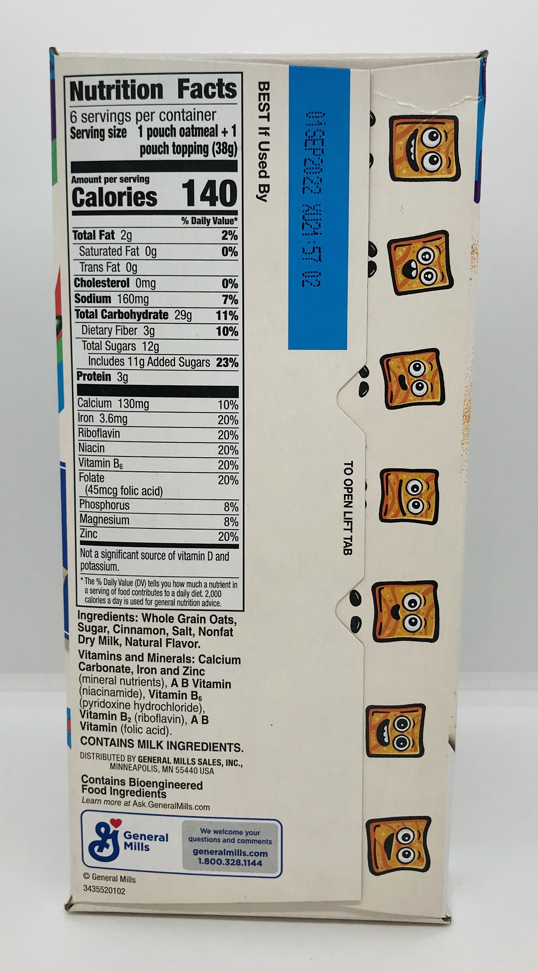 Whole grain oats, sugar, cinnamon, salt, nonfat dry milk, natural flavor.