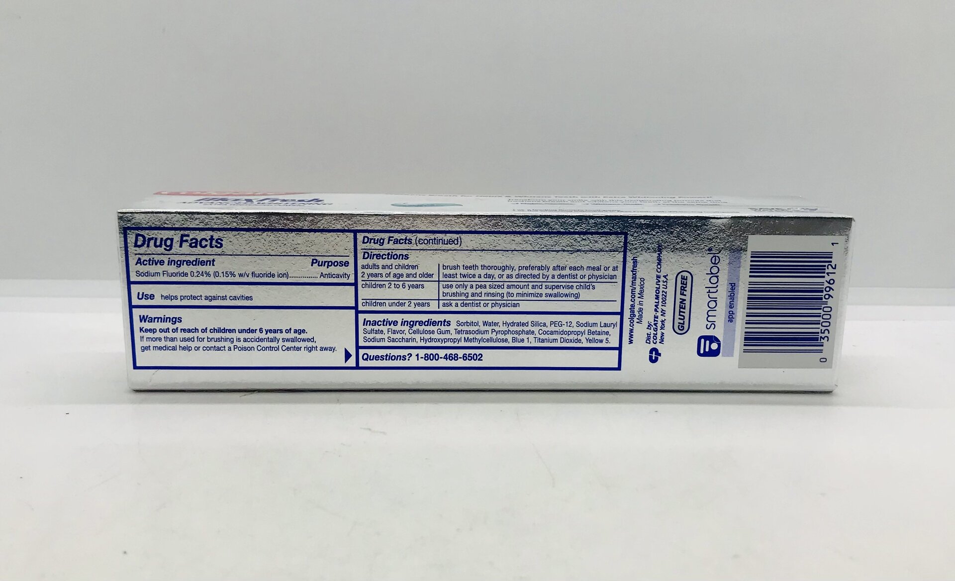 Sorbitol, Water, Hydrated Silica, PEG-12, Sodium Laury! Sulfate, Favor, Cellulose Gum, Tetrasodium Pyrophosphate, Cocamidopropyl Betaine, Sodium Saccharin, Hydroxypropyl Methylcellulose, Blue 1 Titanium Dioxide, Yellow 5.