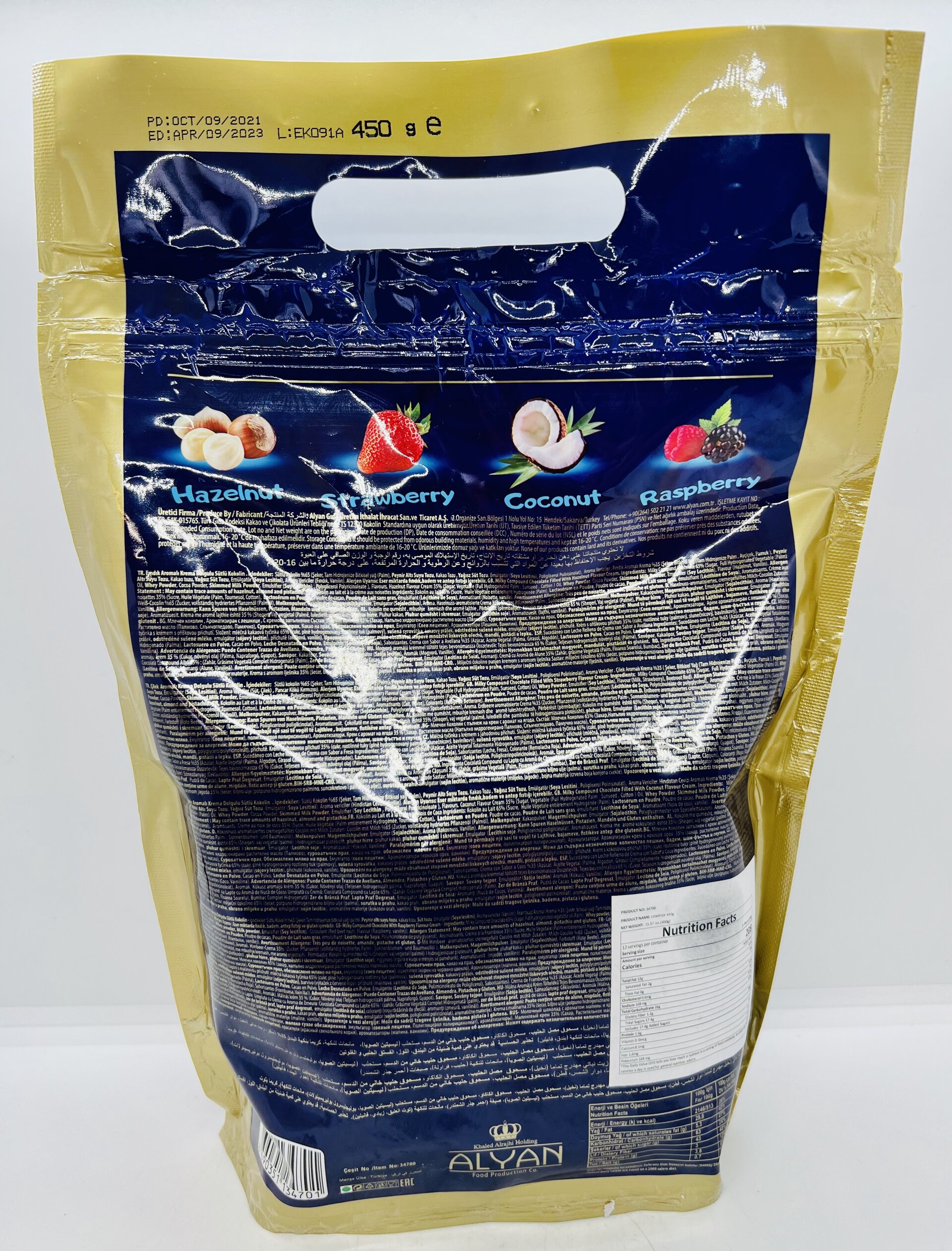Hazelnut, Strawberry, coconut, raspberry flavors.