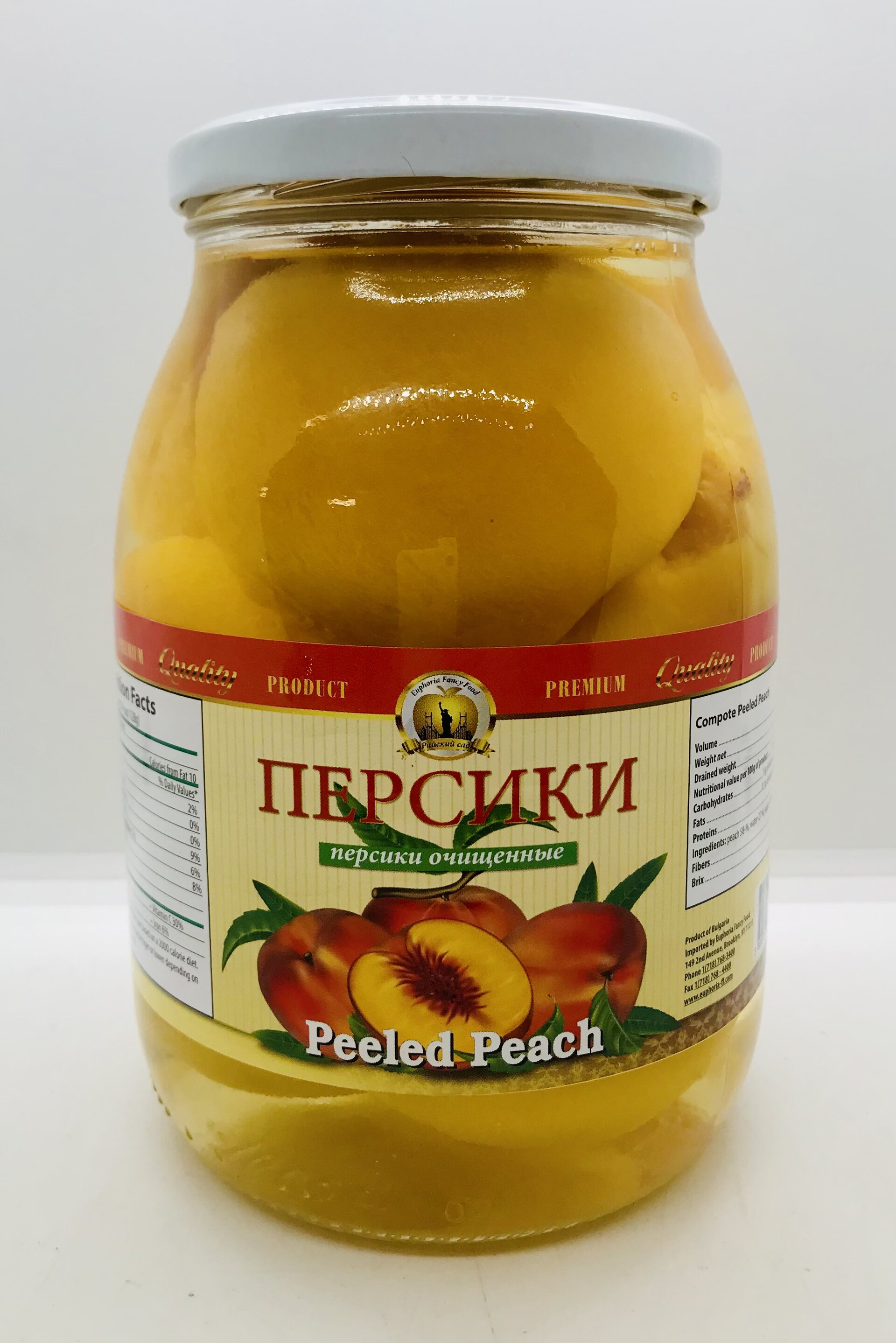 Peach 58%, water 27%, sugar 14%, citric acid.