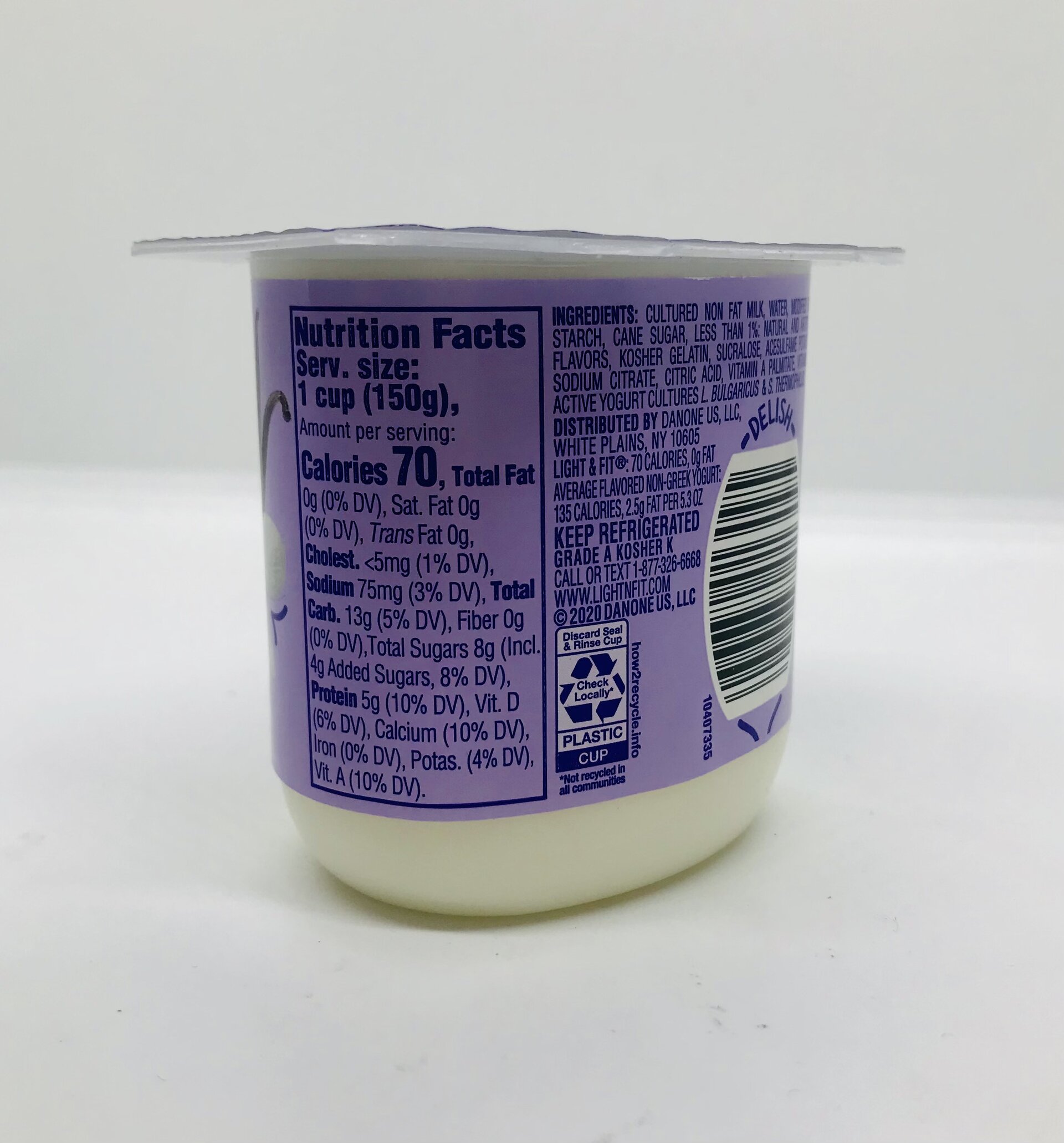Cultured nonfat milk, water, modified food starch, cane sugar, less than 1%: natural and artificial flavors, kosher gelatin, sucralose, acesulfame potassium, sodium citrate, citric acid, Vitamin A palmitate, vitamin D3, active yogurt cultures.