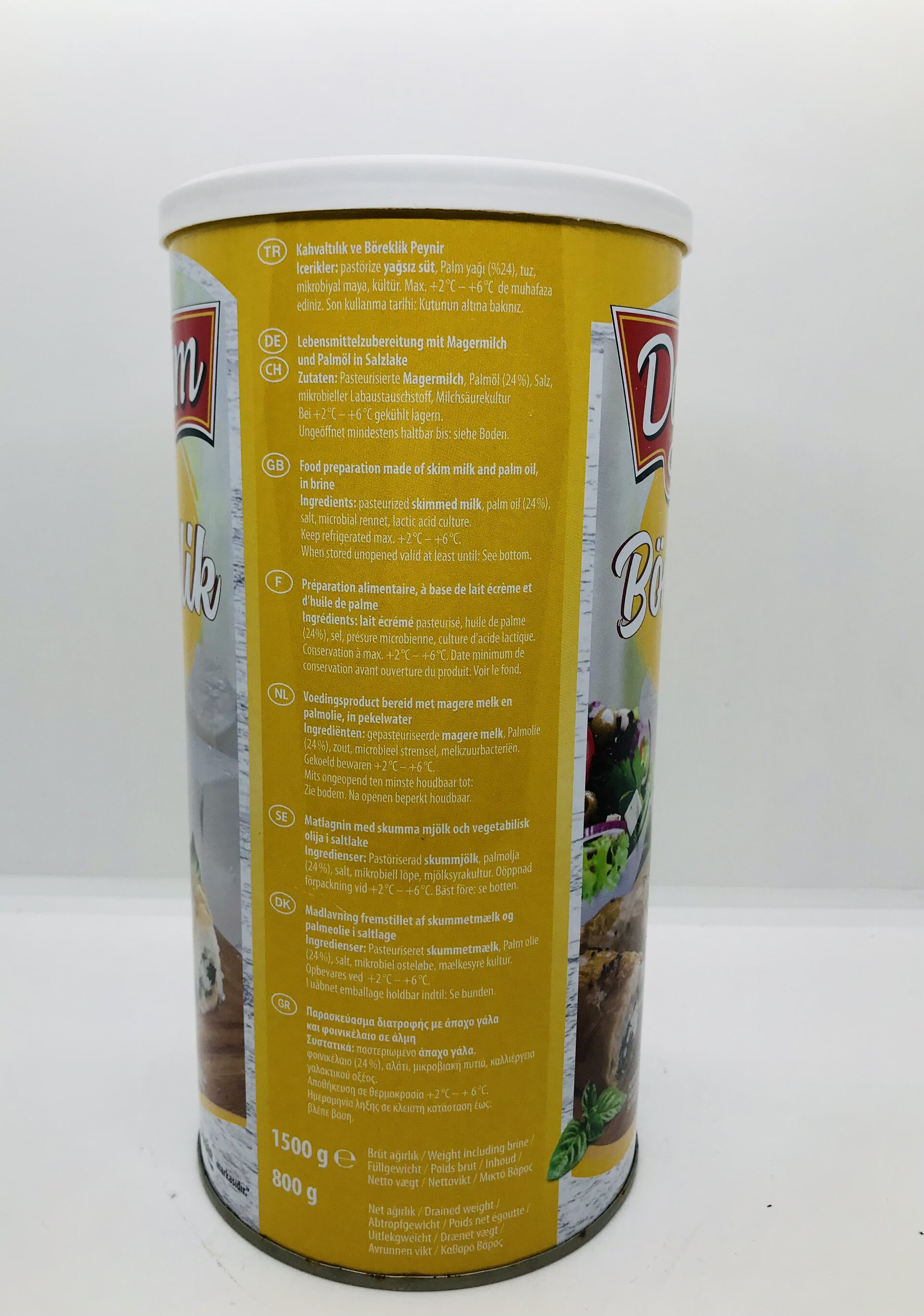 Pasratiuzed skimmed milk, palm, oil, (24%)salt microbial rennet, lactic acid culture.