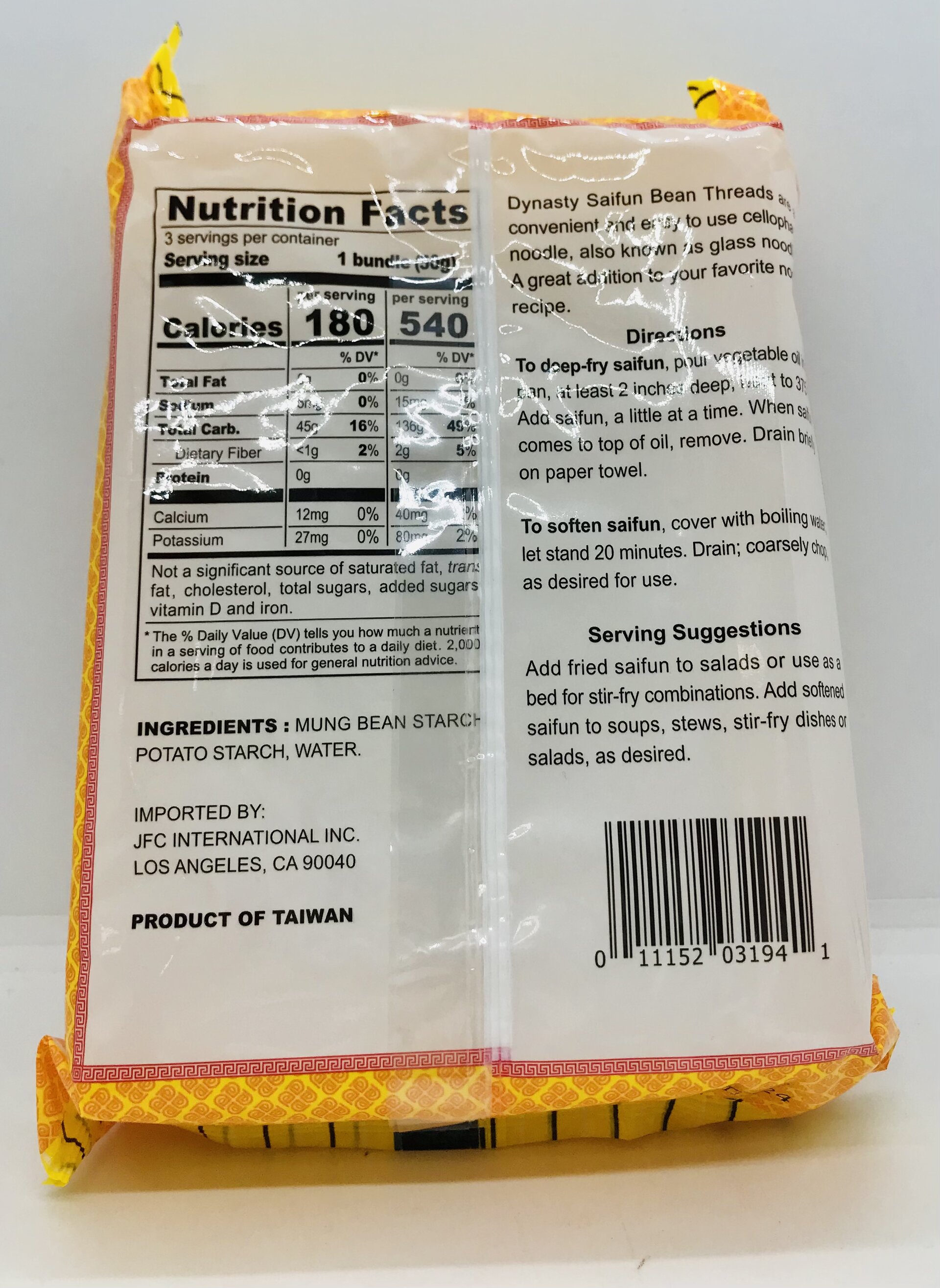 Mung bean starch, potato starch, water.