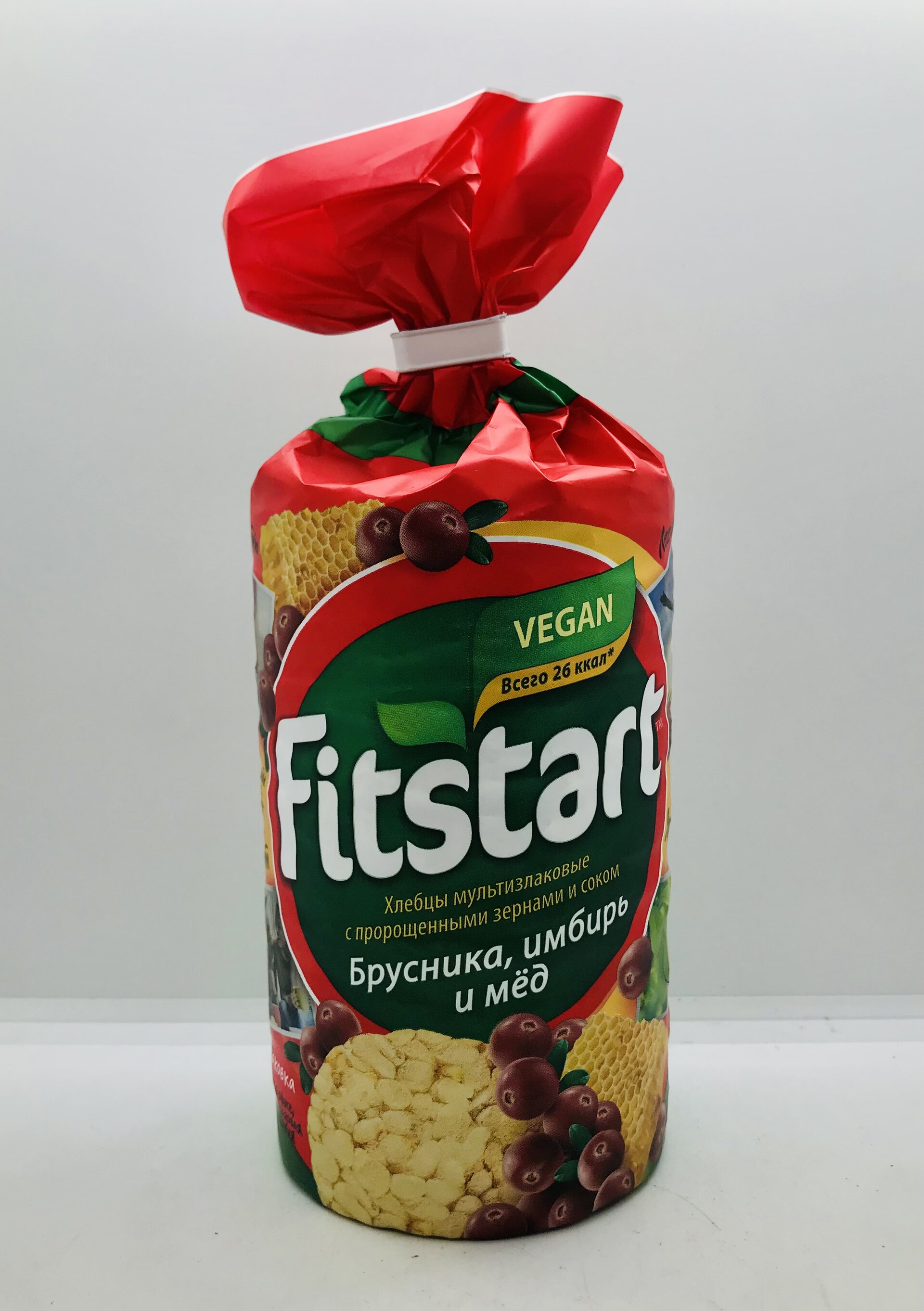 A mixture of cereals (wheat, rice groats, buckwheat groats, rye, and wat flakes), lingonberry juice concentrated, ground ginger, salt, sweetener sucralose, natural cranberries and honey, honey granules (glucose, honey).