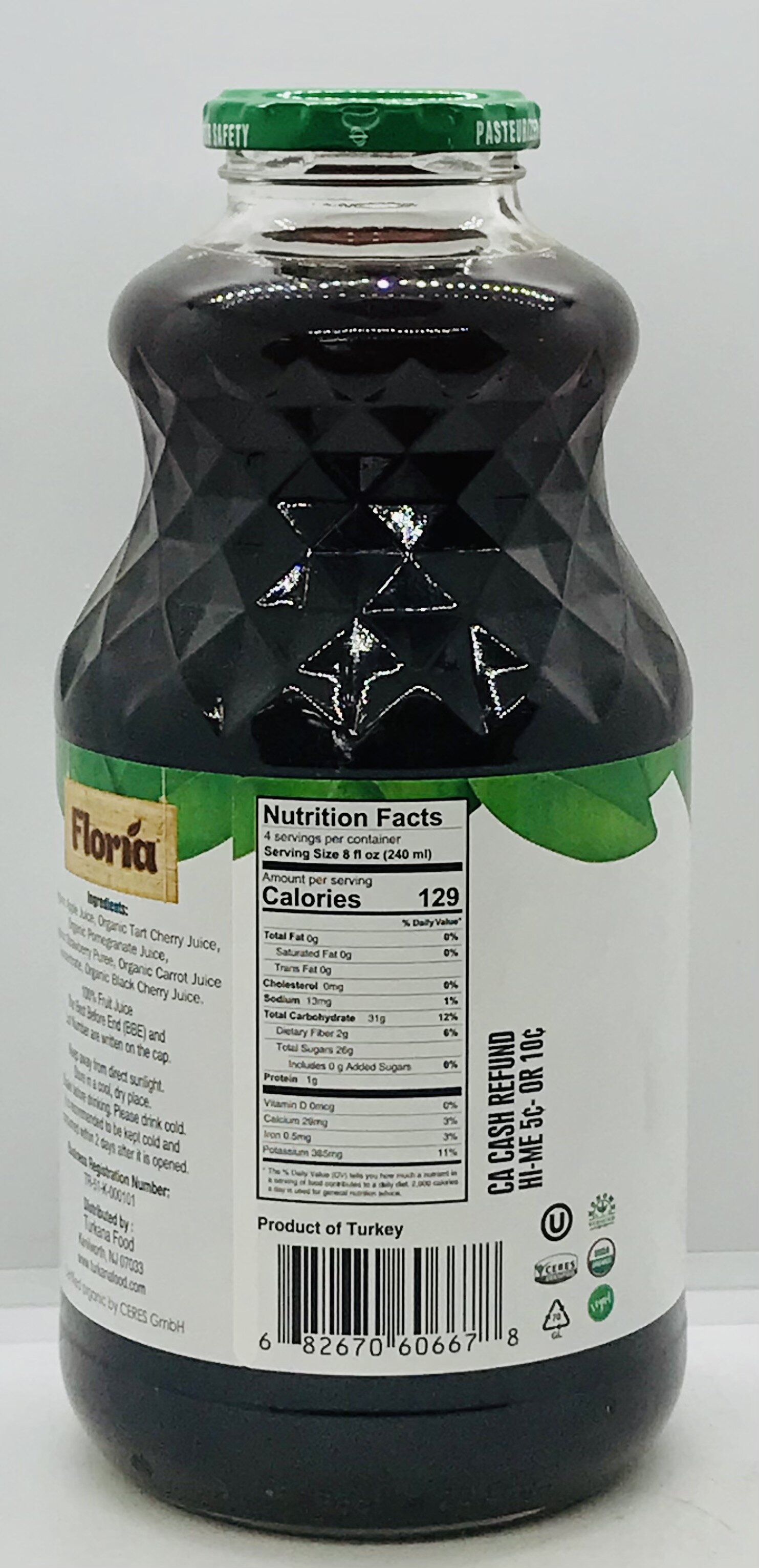Organic apple juice, organic tart cherry juice, organic pomegranate juice, organic strawberry puree, organic carrot juice concentrate, organic black cherry juice.