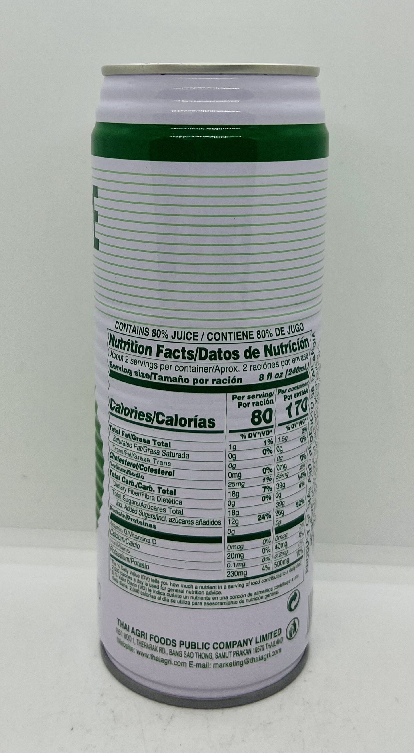 Young coconut juice, water, sugar, young coconut pulp, citric acid as acidity regulator, potassium metabisulfite as preservative.