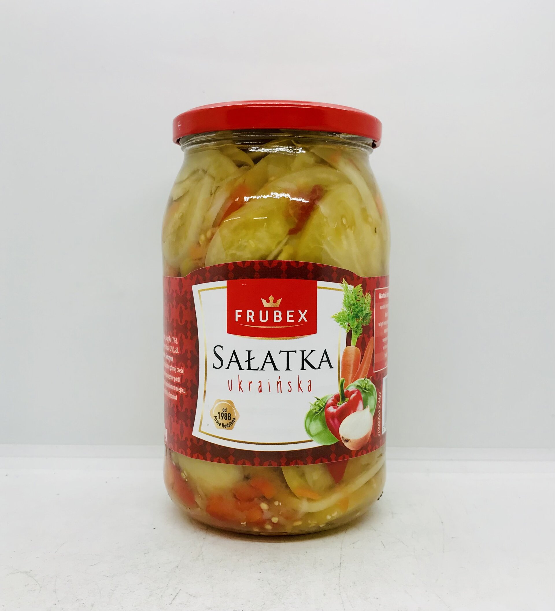 Green tomatoes, water, vinegar, pepper, carrot, sugar, onion, salt.