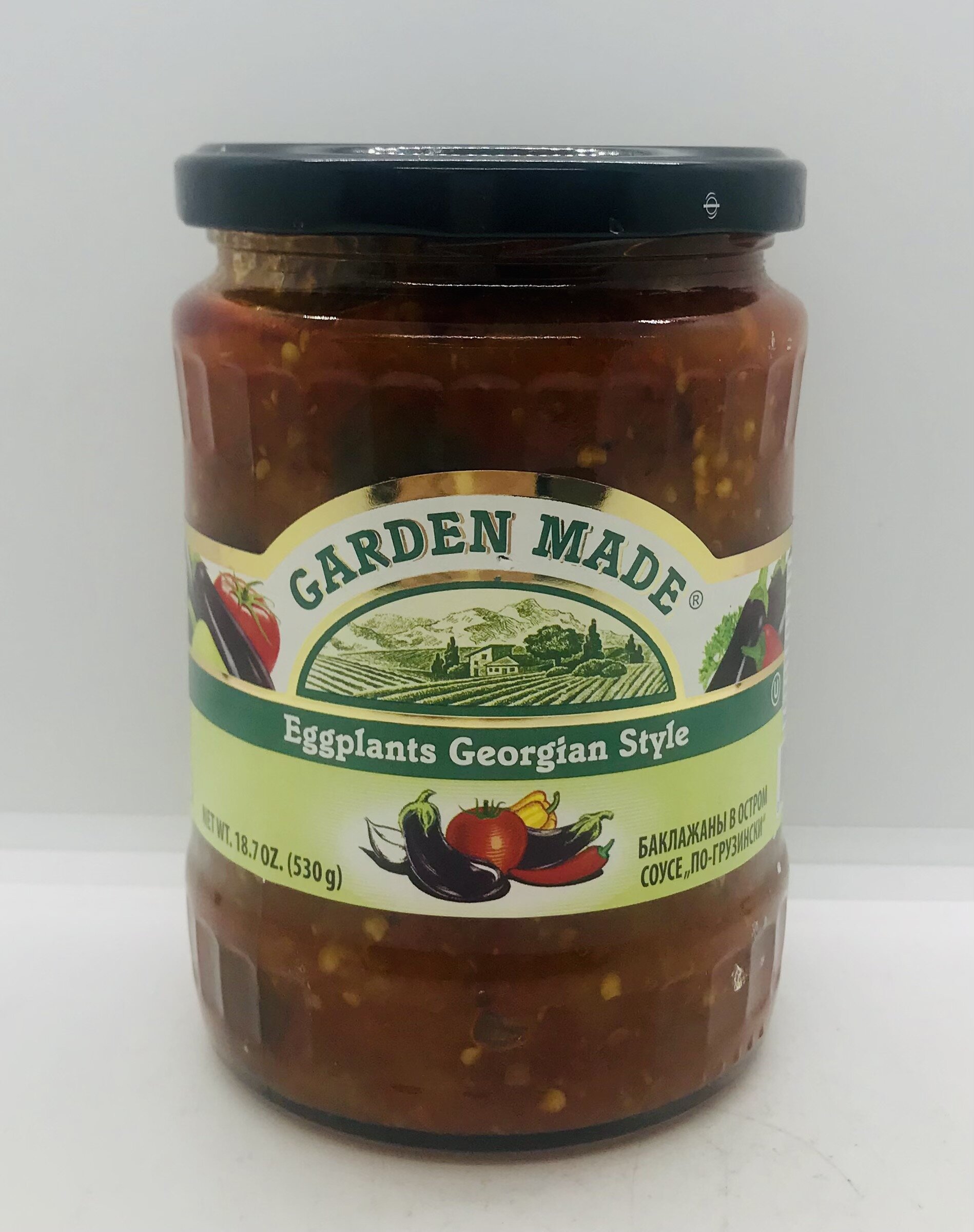 Eggplant, peppers, water, sunflower oil, sugar, tomato paste, salt, acetic acid, garlic, natural capsicum flavoring.