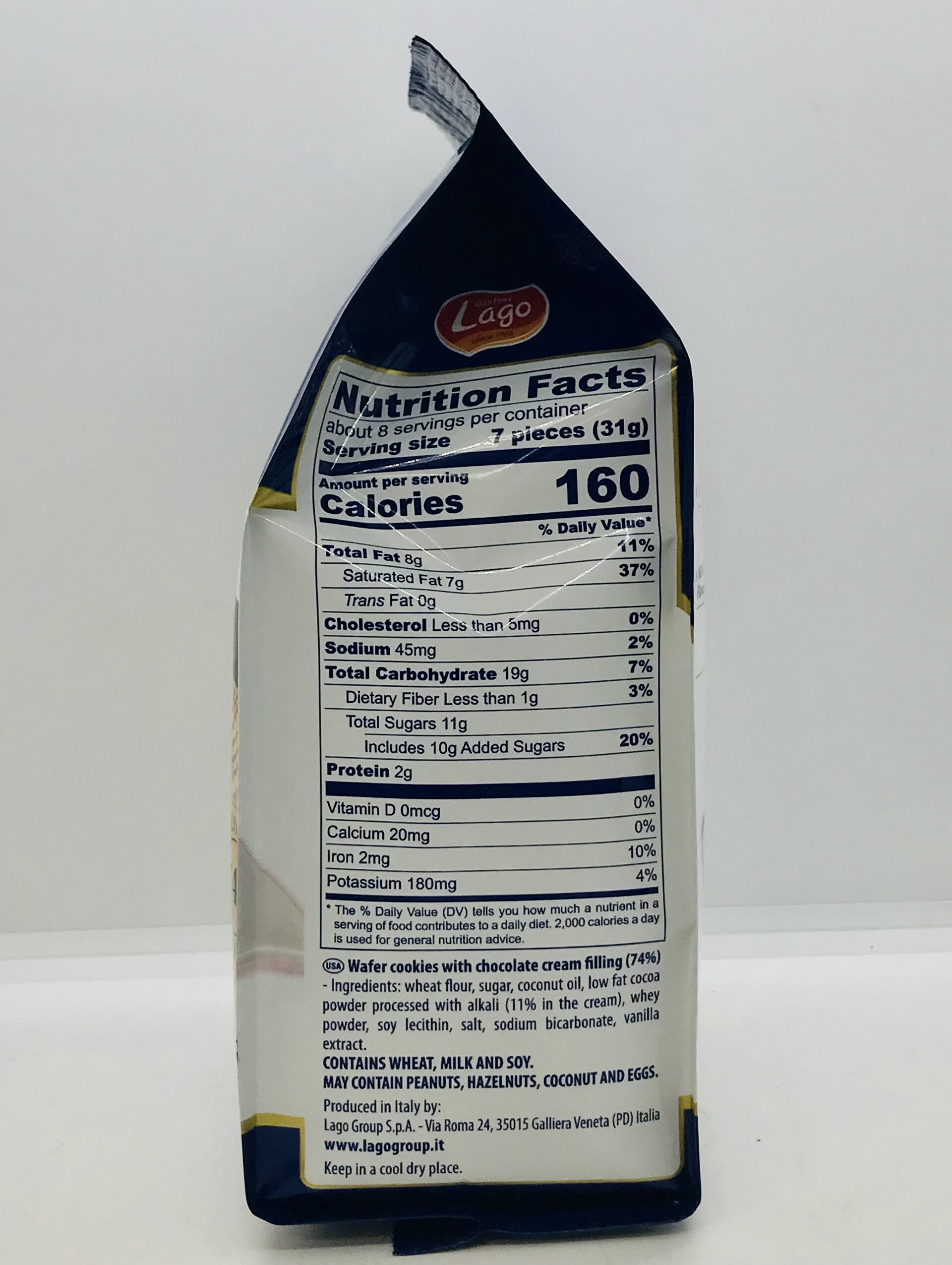 Wheat flour, sugar, coconut oil, low fat cocoa powder processed with alkali (11% in the cream), whey powder, soy lecithin, salt, sodium bicarbonate, vanilla extract.
