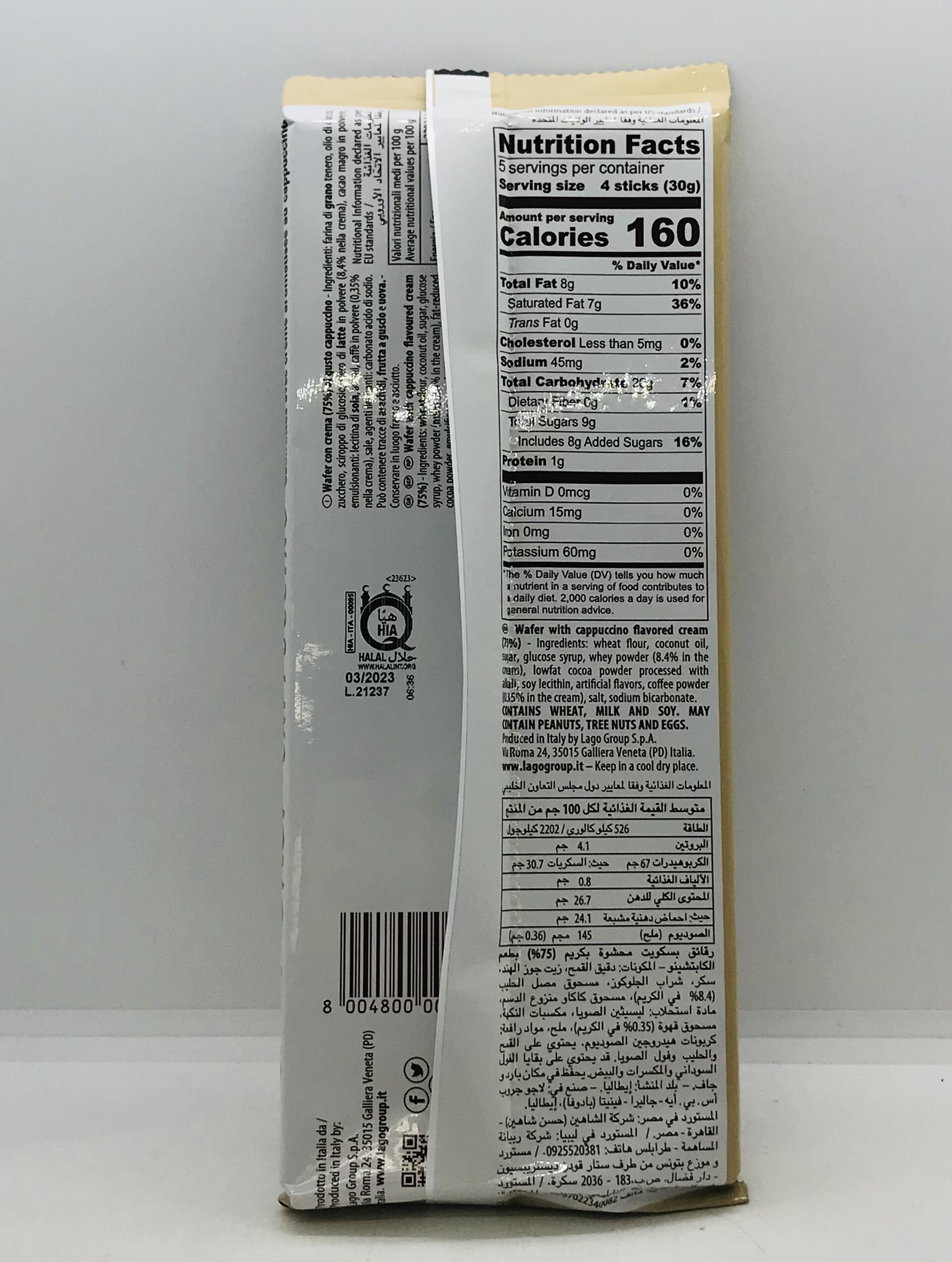 Wheat flour, coconut oil, sugar, glucose syrup, whey powder, lowfat cocoa powder processed with alkali, soy lecithin, artificial flavors, coffee powder, salt, sodium bicarbonate.