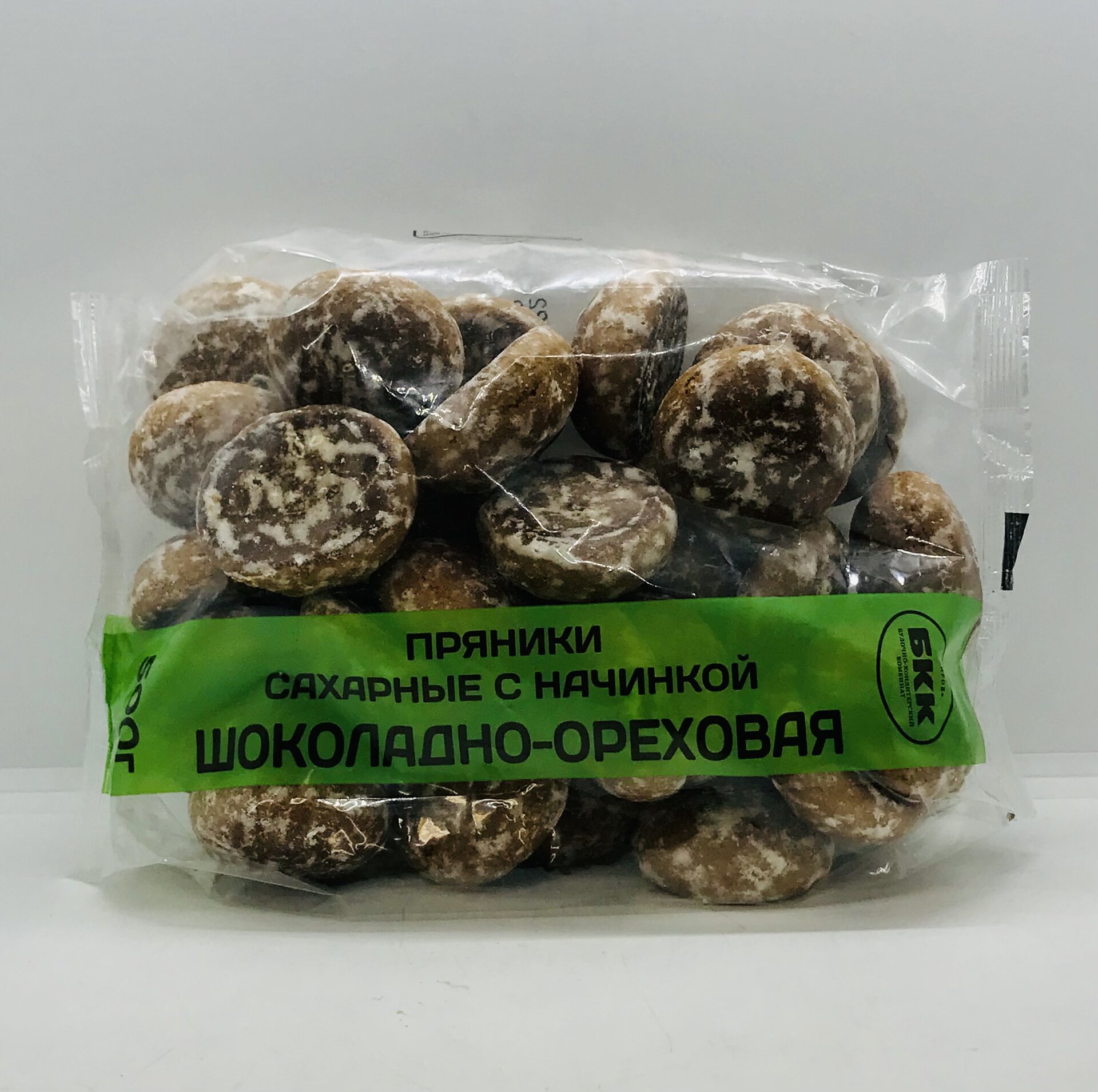 Wheat flour, sugar, drinking water, rye flour, chocolate nut filling (glucose syrup, dextrose, sugar, thickeners-com starch, E466, moisture-holding agent glycerol, cocoa powder, chocolate, roasted grated hazelnuts, vegetable fat, flavorings, edible table salt, acidity regulator. tartaric acid, preservative - potassium sorbate, dye E171, emulsifier E435), margarine, malt extract, leavening agents ammonium carbonate, sodium bicarbonate, vanillin flavor, acidity regulator-citric acid.