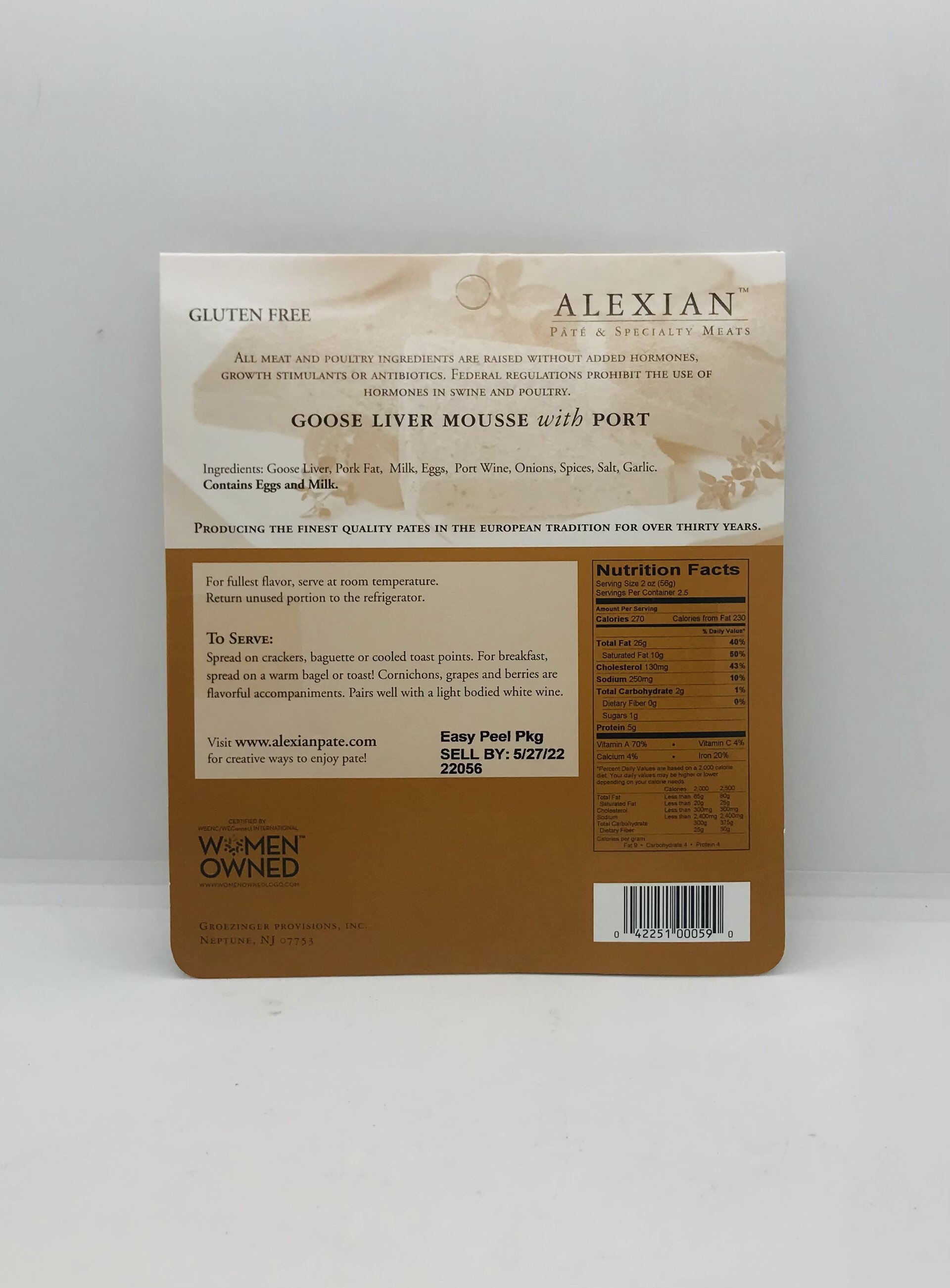 Goose liver , pork fat , milk, eggs, port wine, onions, spices , salt, garlic.