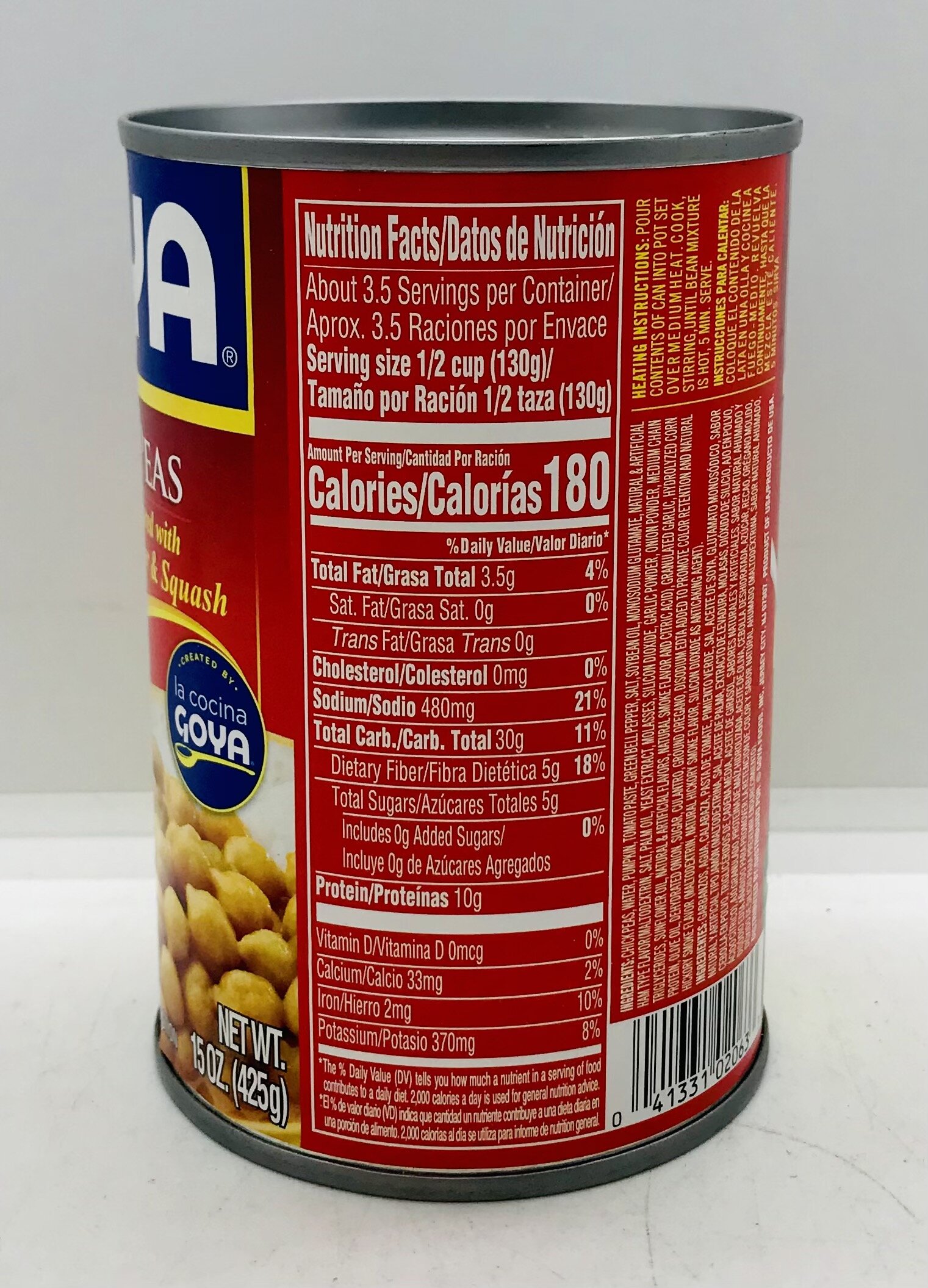 CHICKPEAS, WATER PUMP TOMATO PASTE GREEN BELL PEPPER, SALT SOYBEAN ON MONOSODIUM GLUTAMATE NATURAL & ARTIFICIAL HEATING INSTRUCTIONS POUR CONTENTS OF CAN INTO POT SET OVER MEDIUM HEAT. COOK STIRRING, UNTIL BEAN MIXTURE IS HOT 5 MIN SERVE HAM TYPE FLAVOR MALTODEXTRIN SALT PALM OIL YEAST EXTRACE MOLASSES, SALICON DIOKIDE GARLIC POWDER, ONION POWDER MEDIUM CHAIN TRIGLYCERIDES SUNFLOWER OIL NATURAL&ARTIFICIAL FLAVORS NATURAL SMOKE FLAVOR AND CITRIC ACI GRANULATED GARLIC HYDROLYZED CORN PROTEK OLIVE ON DEHYDRATED ON SUGAR, COLANTRO, GROUND OREGANO, DISODIUM EDTA ADDED TO PROMOTE COLOR RETENTION AND MATURAL HICKORY SMOKE PLAVOR MALTODEXTRIN NATURAL HICKORY SMOKE FUVOR, SILICON DAKDE AS ANDICAKING AGENT