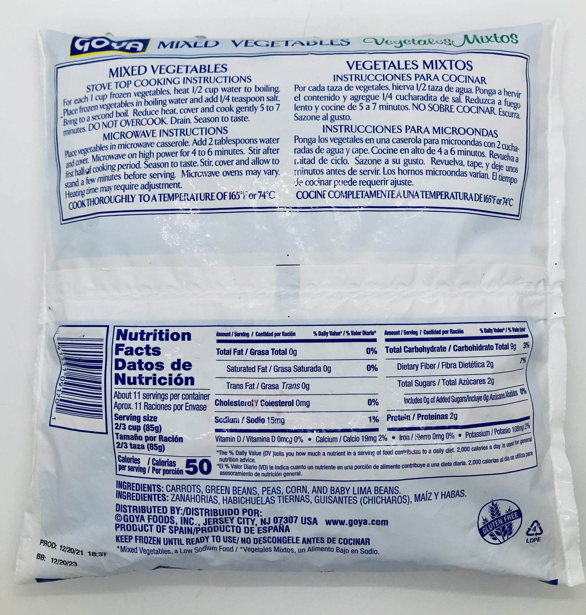 Carrots, green beans, peas, corn, and baby lima beans.