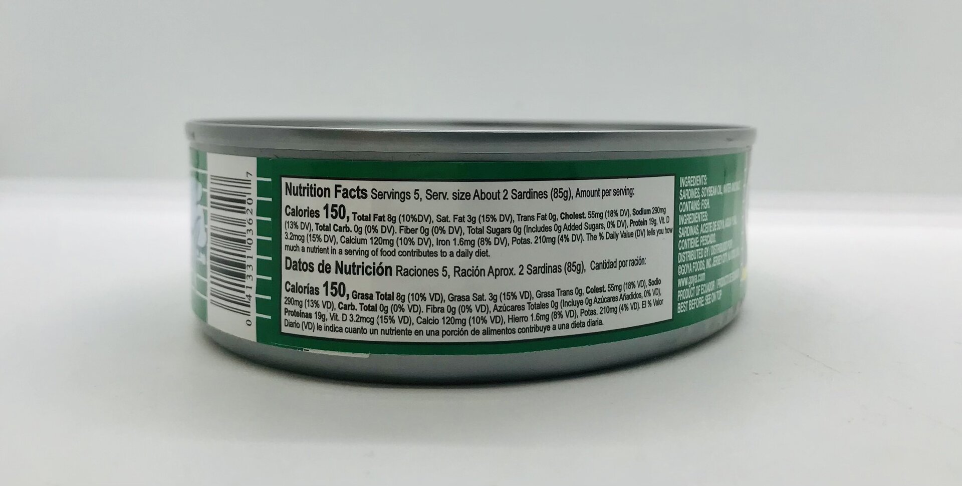 Sardines, soybean oil, water and salt.