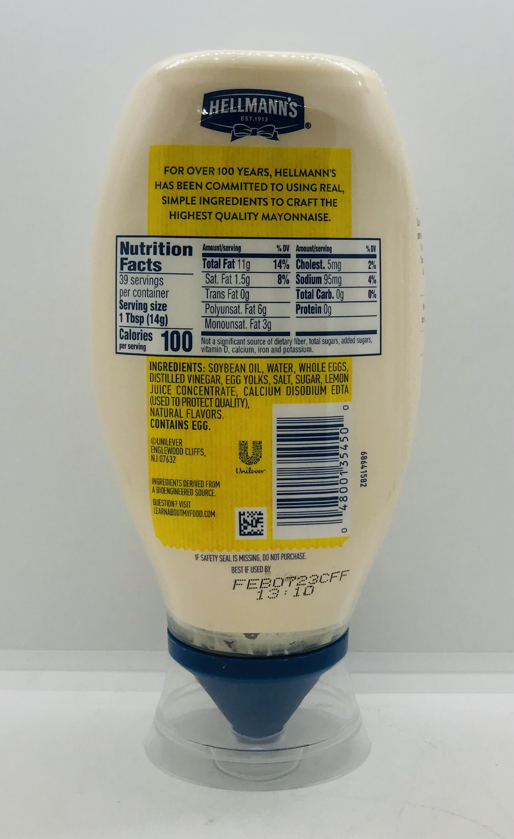 Soybean oil, water, whole eggs, distilled vinegar, egg yolks, salt, sugar, lemon juice concentrate, calcium disodium edta, natural flavors.