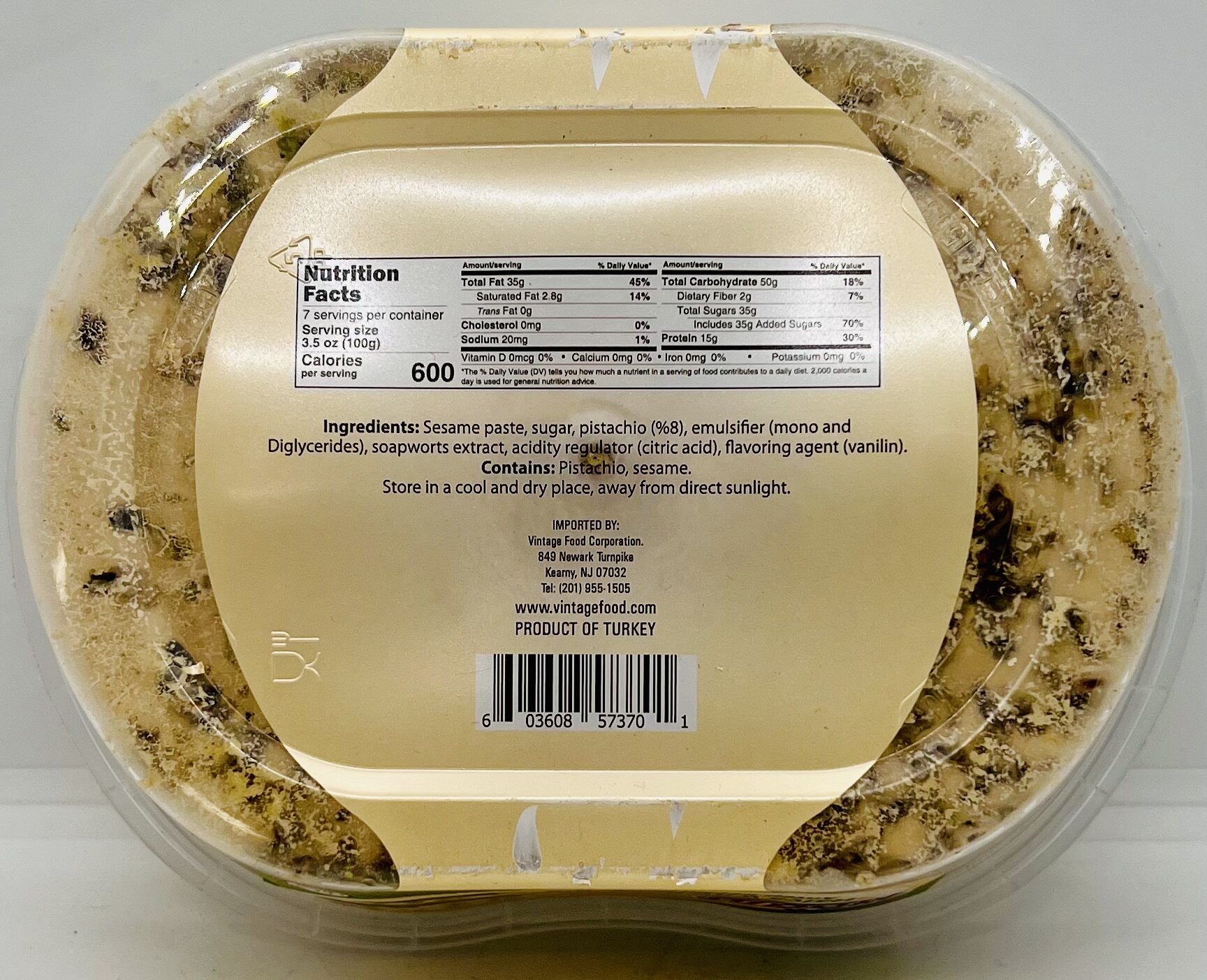 Sesame paste, sugar, pistachio (8%), emulsifier, soapworts extract, acidity regulator, flavoring agent.