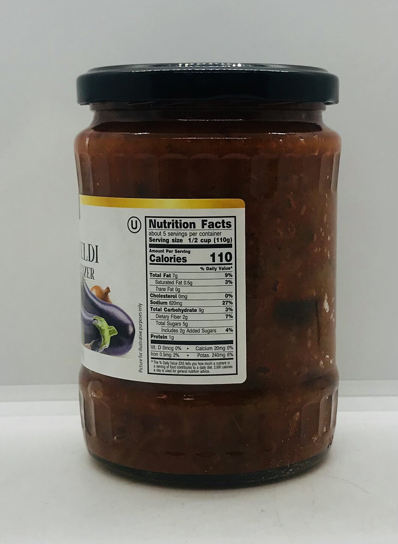 Eggplant, onion, water, tomato paste, sunflower oil, sugar, salt, garlic, parsley.