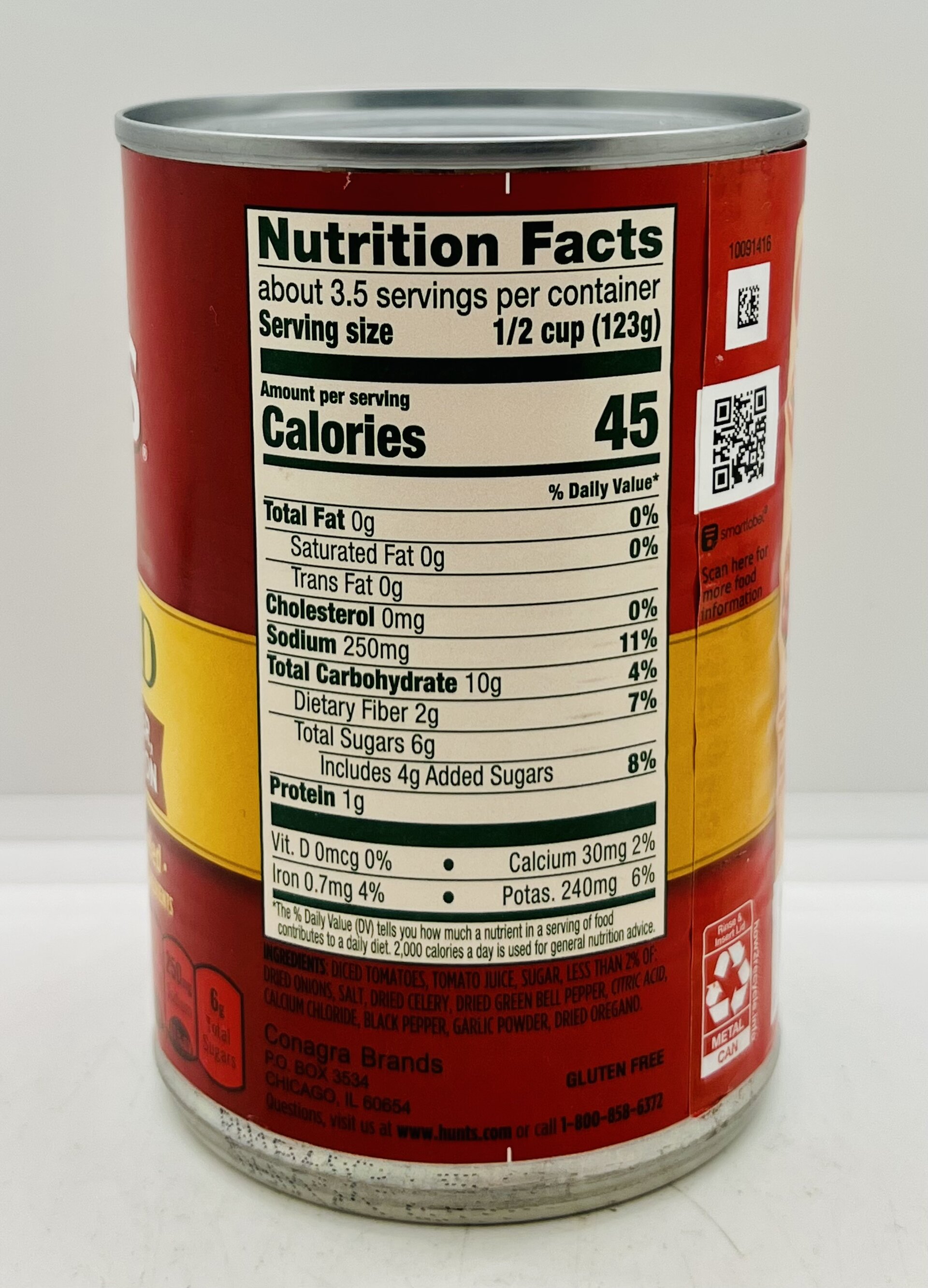 DICED TOMATOES, TOMATO JUICE, SUGAR LESS THAN 2% OF DRIED ONIONS, SALT, DRIED CELERY, DRIED GREEN BELL PEPPER CHRIC ACID CALCIUM CHLORIDE, BLACK PEPPER, GARLIC POWDER, DRIED OREGANO.