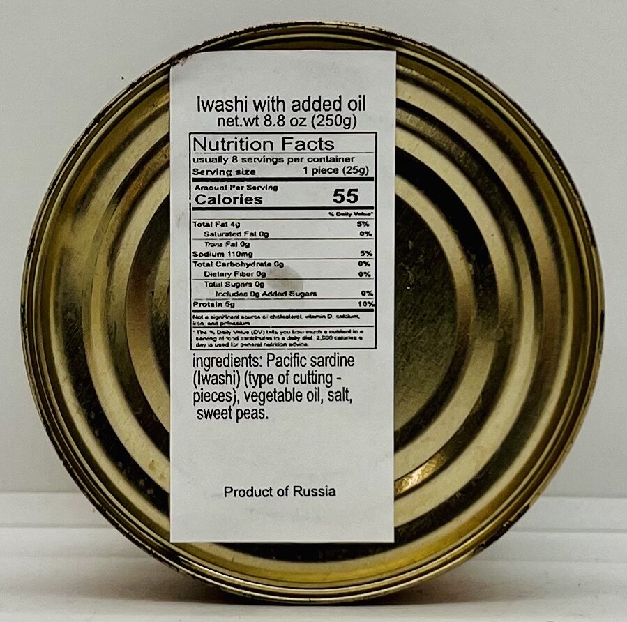 Pacific sardine, vegetable oil, salt, sweet peas.