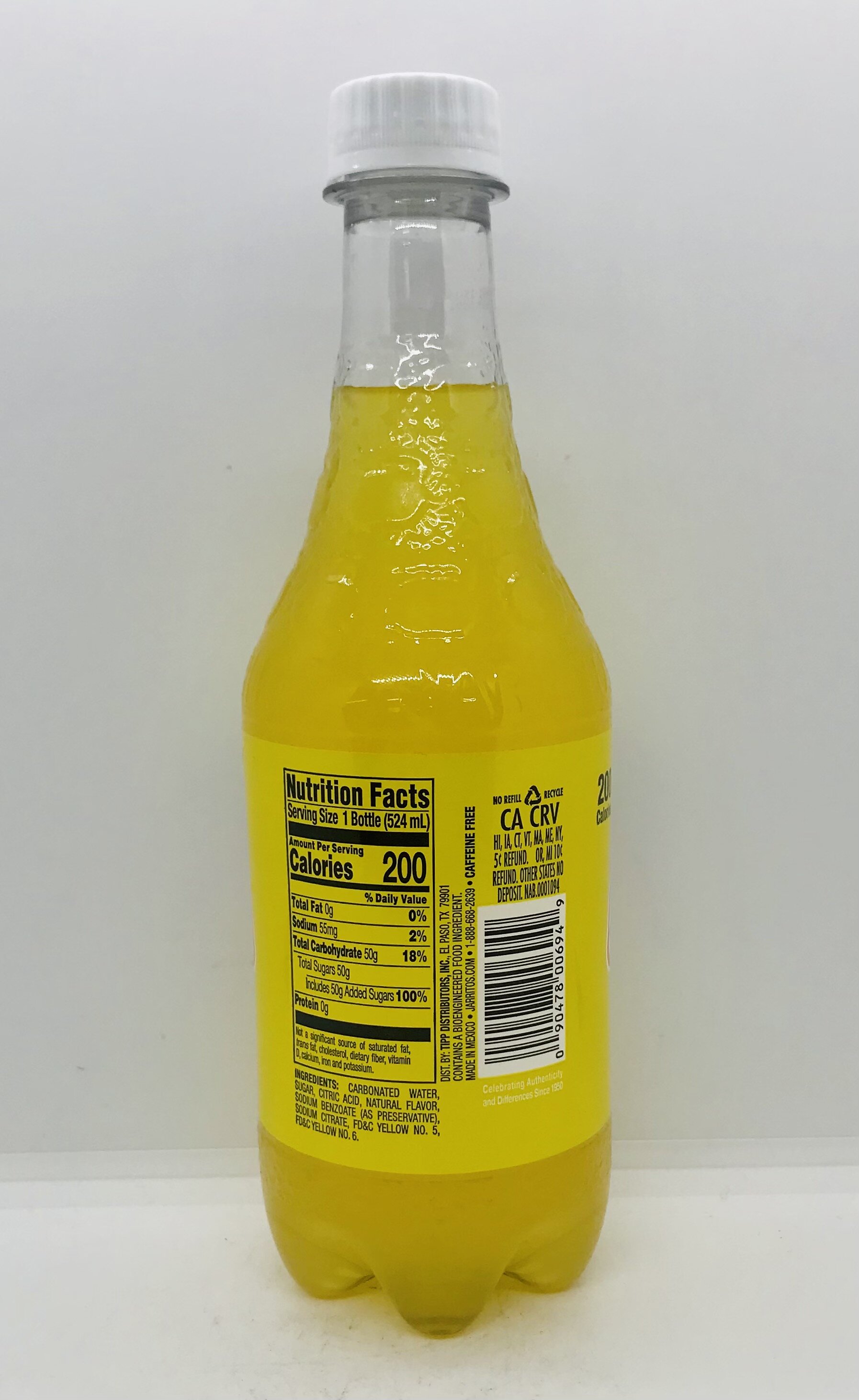 Carbonated water, sugar, citric acid, natural flavor, sodium benzoate, sodium citrate, FD&C yellow no. 5, FD&C yellow no. 6.