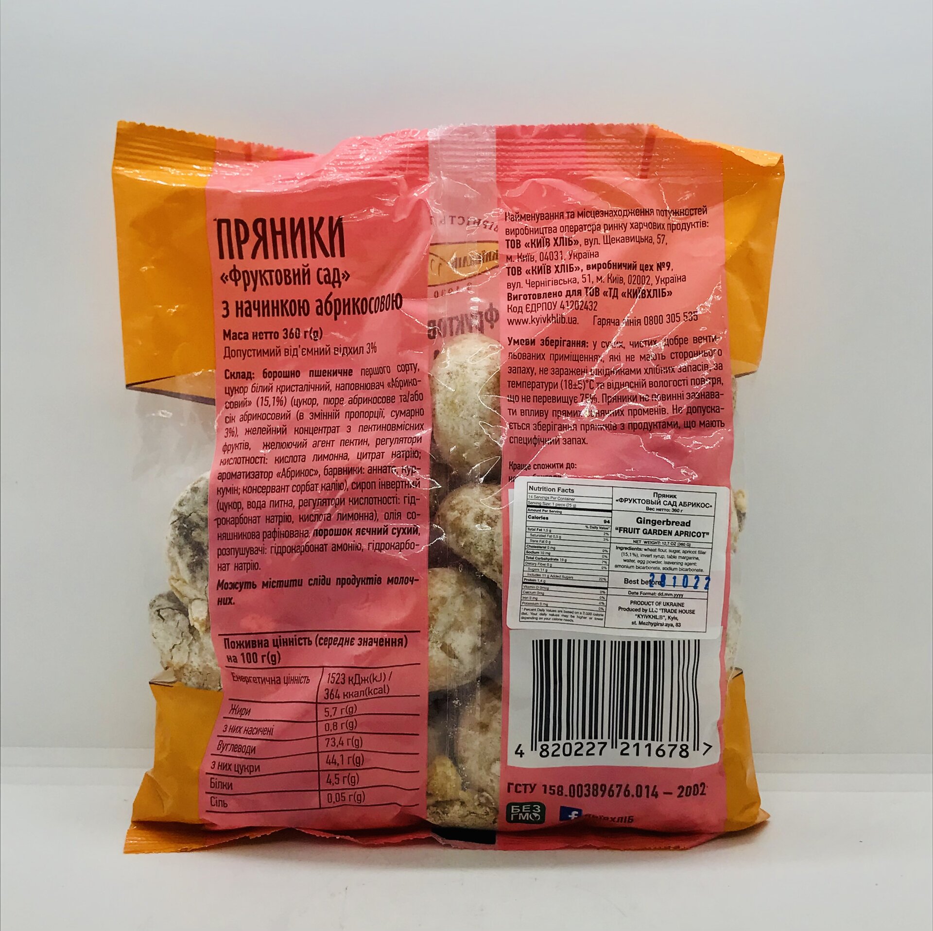 Wheat flour, sugar, apricot filler, invert syrup, table margarine, water, egg powder, leavening agent: amonium bicarbonate, sodium bicarbonate.