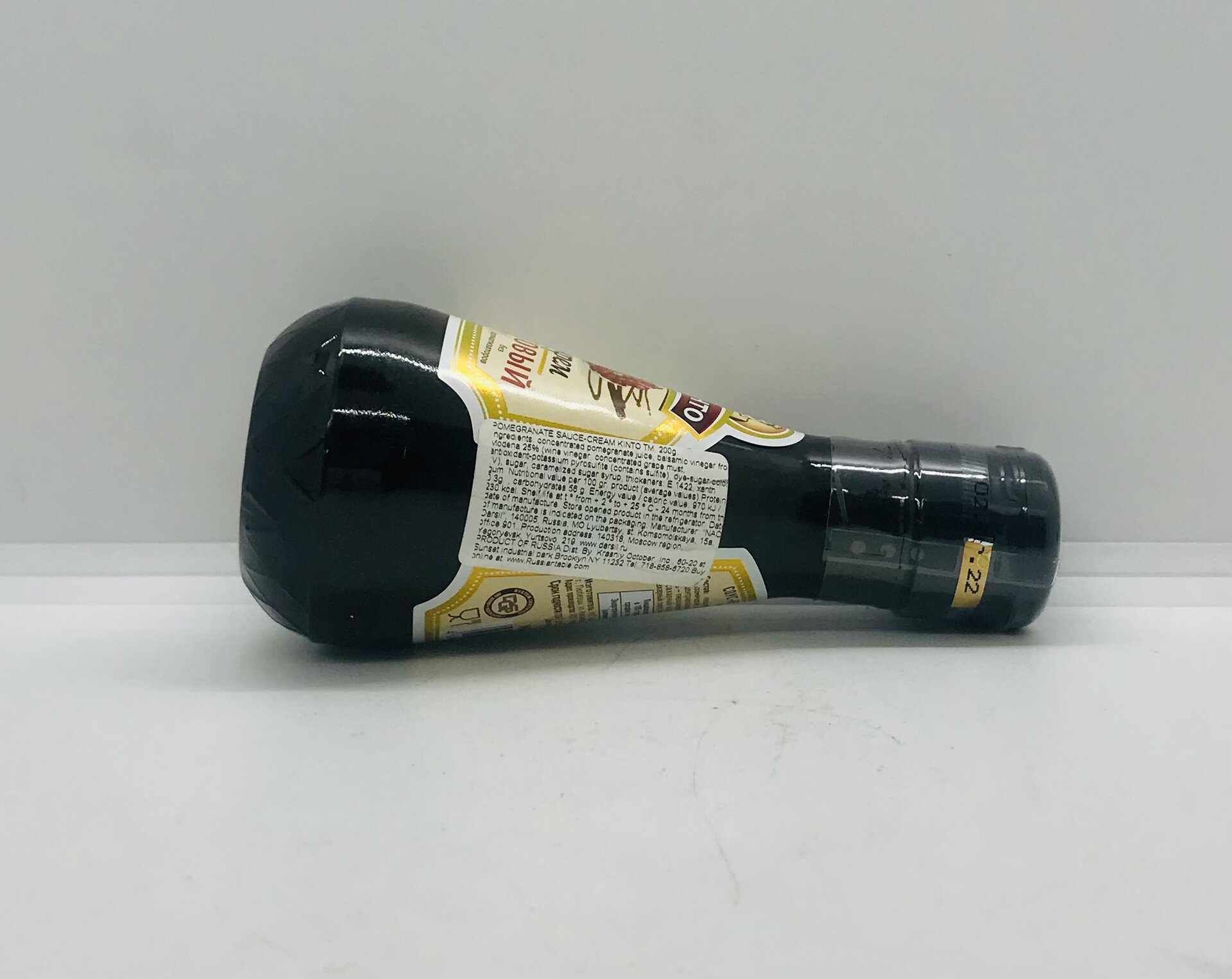 Concentrated pomegranate juice, balsamic vinegar from Modena 25% (wine vinegar, contains grape must, antioxidant-potassium pyrosulfate (contains- Sulfite)), dye-sugar color IV), sugar, caramelized sugar syrup, thickeners: 1422, xanthan gum.