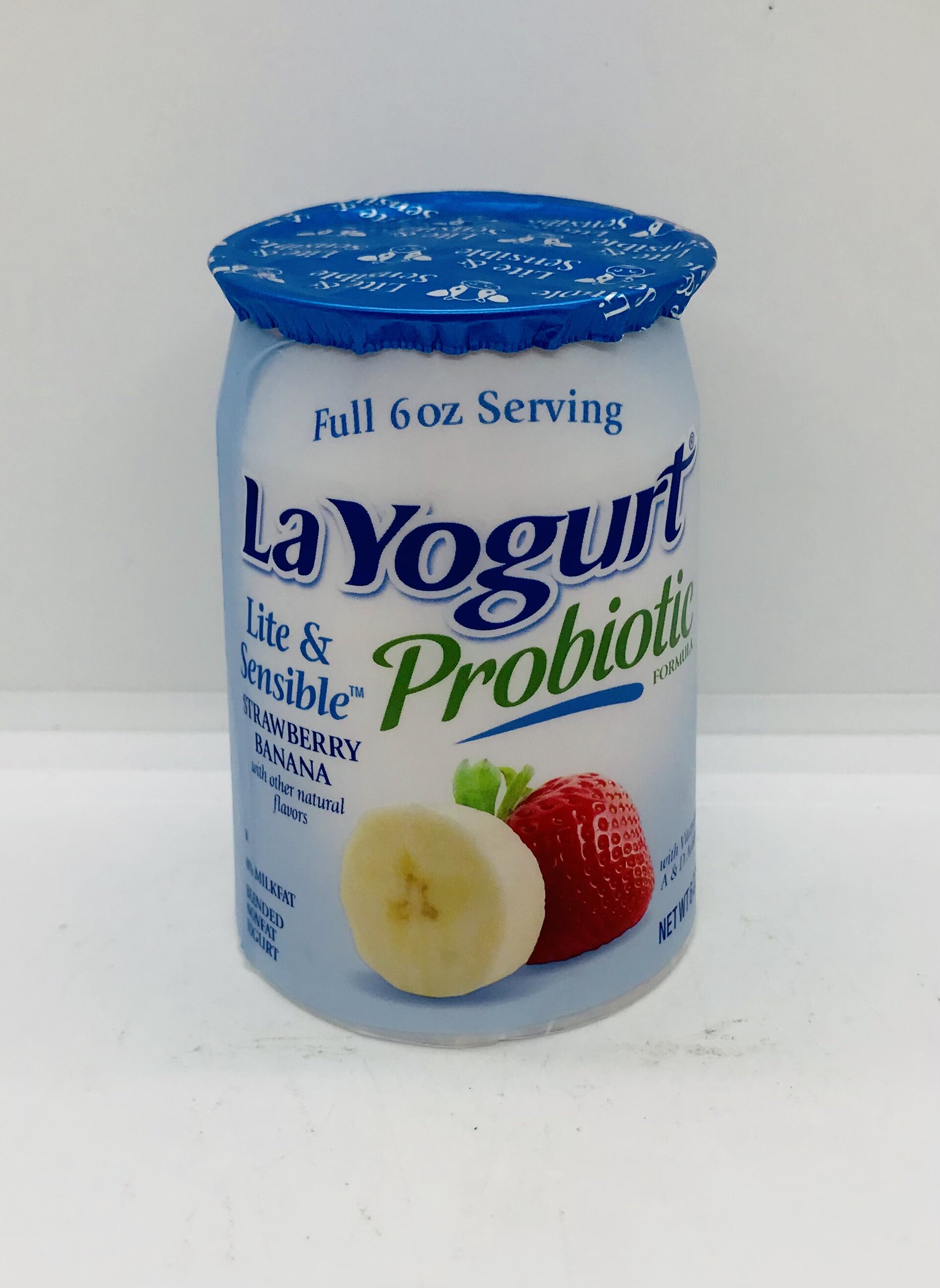 Cultured pasteurized grade A nonfat milk, water, strawberries, modified cornstarch, frutose, bananas, kosher gelatin, natural flavors, nonfat milk solids, citric acid, tricalcium phosphate, acesulfame potassium, sucralose, beta carotene, vitamin A palmitate, vitamin D3.