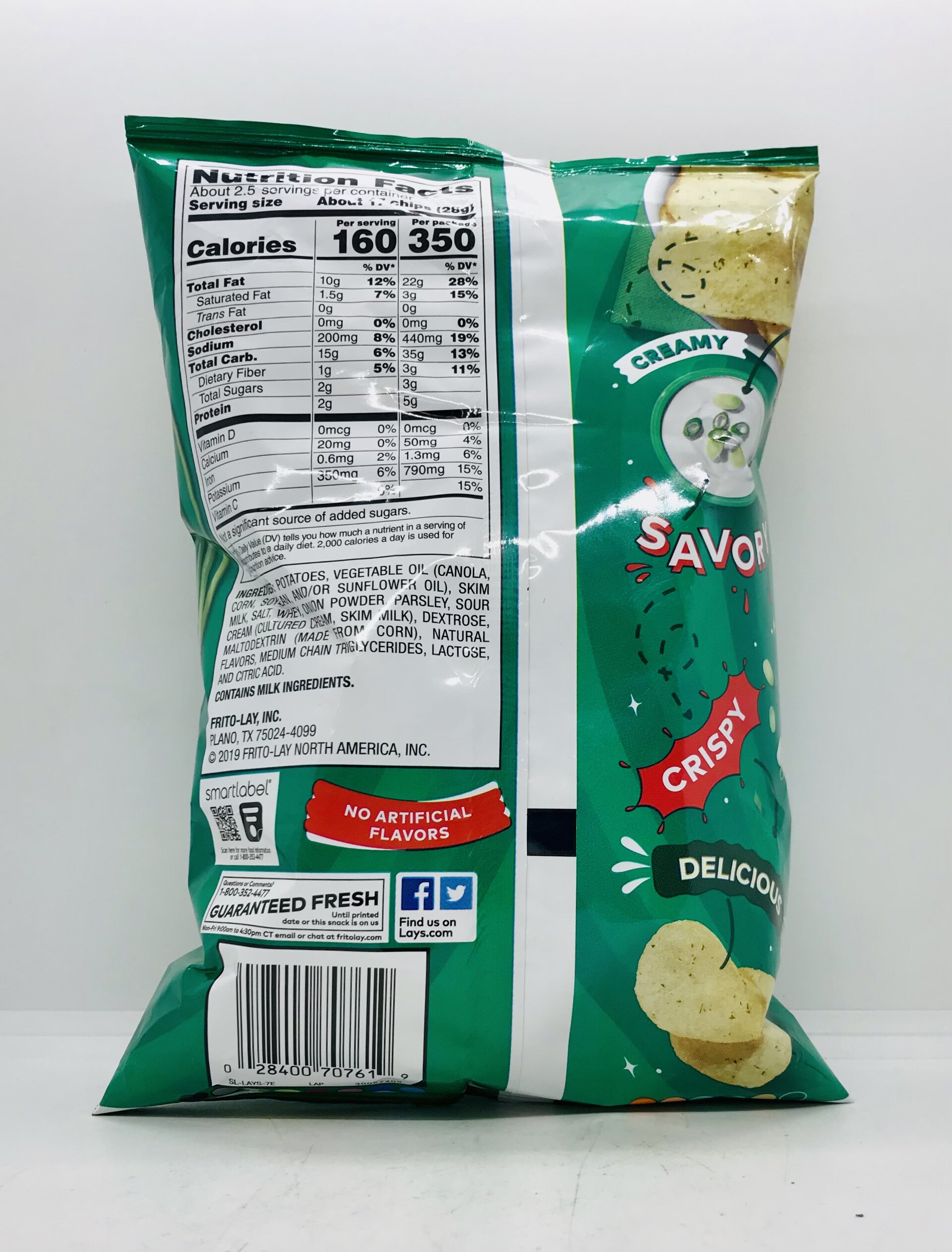 Potatoes, Vegetable Oil (Sunflower, Corn and/or Canola Oil), Sour Cream & Onion Seasoning (Skim Milk, Salt, Maltodextrin [Made from Corn], Onion Powder, Whey, Sour Cream [Cultured Cream, Skim Milk], Canola Oil, Parsley, Natural Flavor, Lactose, Sunflower Oil, Citric Acid, Whey Protein Concentrate and Buttermilk). Contains Milk Ingredients.
