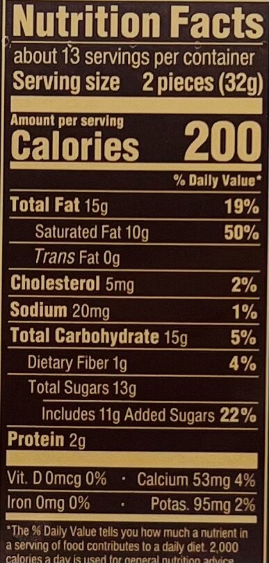 Sugar, cocoa butter, vegetable oil, milk, chocolate, skim milk, milkfat, soy lecithin, natural and artificial flavors, barley malt powder, caramel paste, cocoa butter, cream, salt, soy lecithin, caramel powder, color added, salt.
