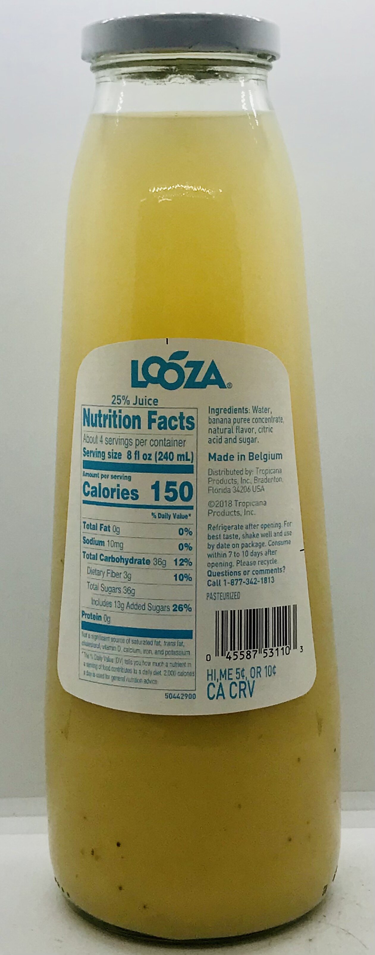 Water, banana puree concentrate, natural flavor, citric acid and sugar.