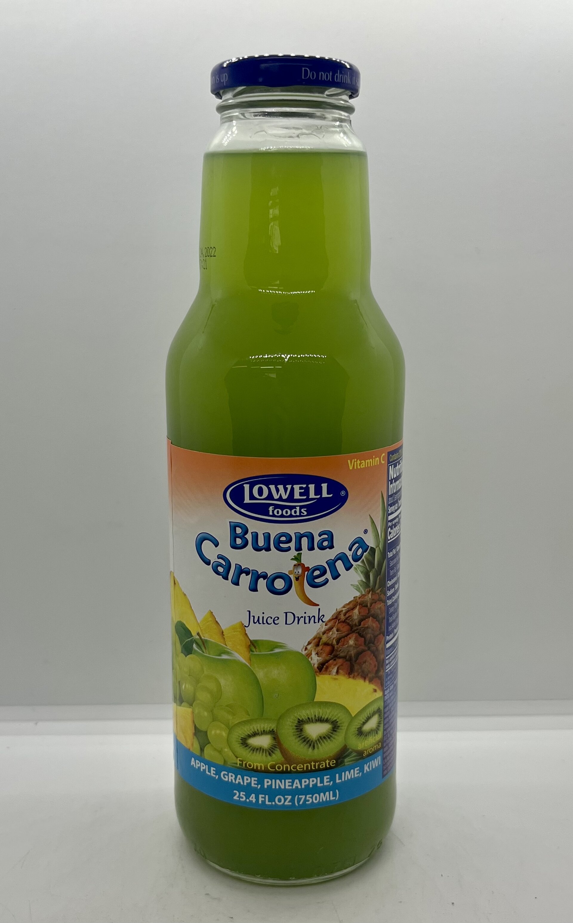 Water, juices made from concentrated juices from apple (17,6 %), grape (2%), pineapple (0.2%), lime (0.1%), kiwi (0.1% sugar, glucose-fructose syrup, acidity regulator-citric acid stabilizers-guar gum, xanthan Gum, arabic gum, antioxidant alpha tocopherol, enriching substances-vitamin C, artifice colors, artificial aromas.