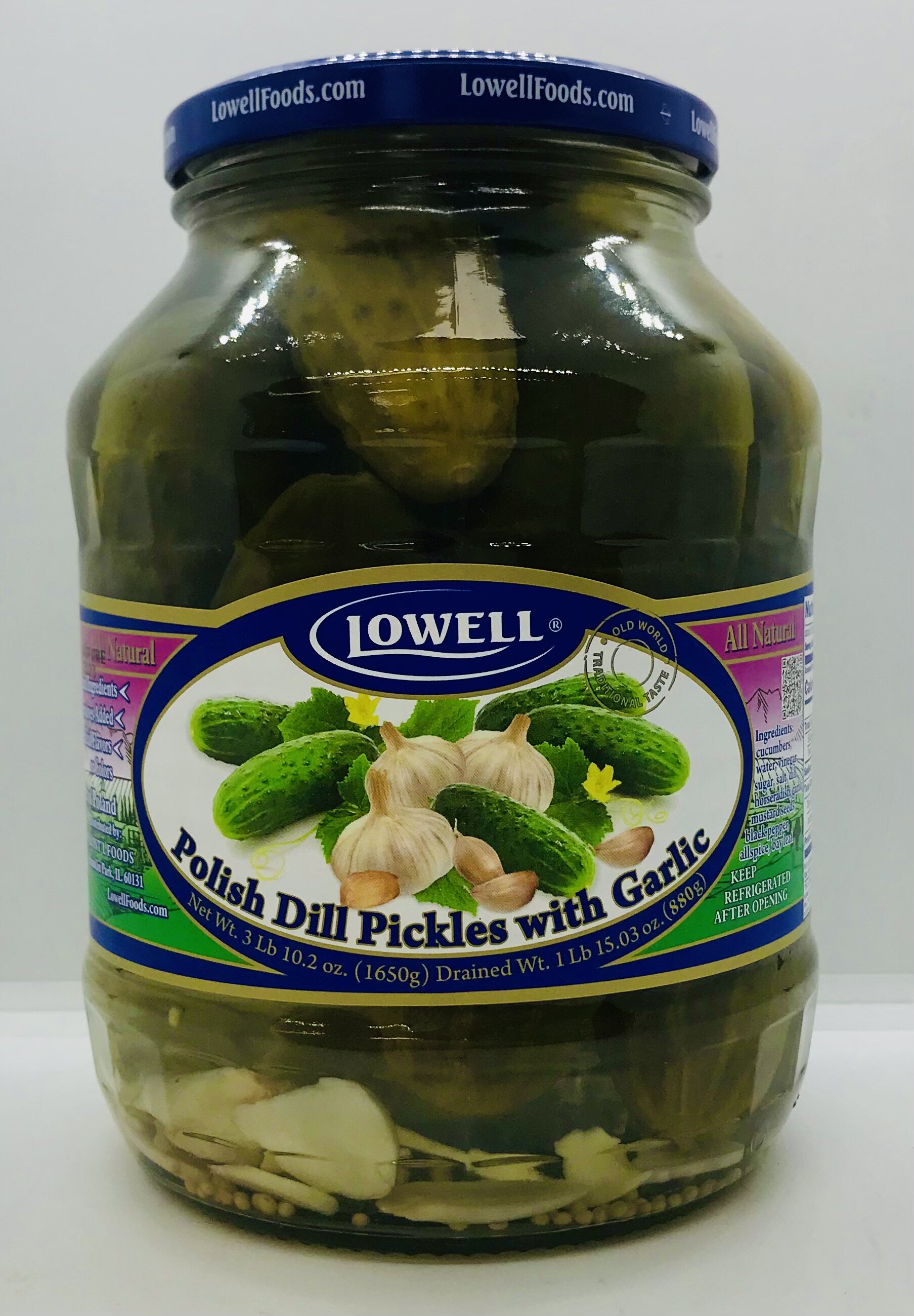 Cucumbers, water, vinegar, sugar, salt, dill, horseradish, garlic, mustard seeds, black pepper, allspice, bay leaf.