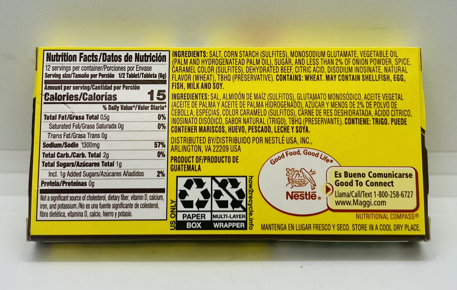 Salt, Cornstarch, Monosodium Glutamate, Partially Hydrogenated Palm Oil, Sugar, And Less Than 2% Of Onion Powder, Dehydrated Beef, Spices, Caramel Color, Turmeric, Citric Acid, Disodium Inosinate, Natural Flavor, TBHQ (preservative).