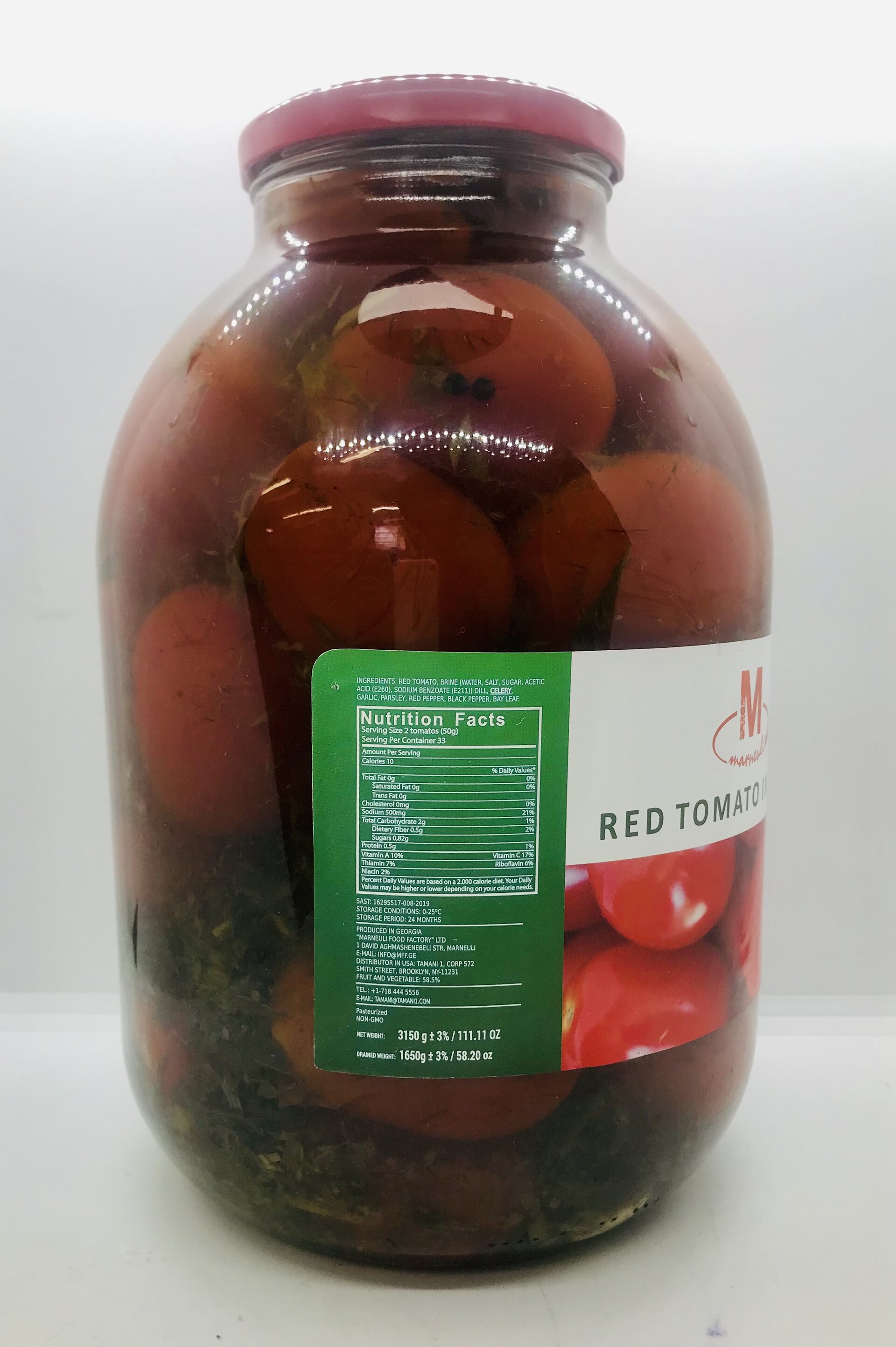 Red tomato, brine (water, salt, sugar, acetic acid, sodium benzoate) dill, celery, garlic, parsley, red pepper, black pepper, bay leaf.